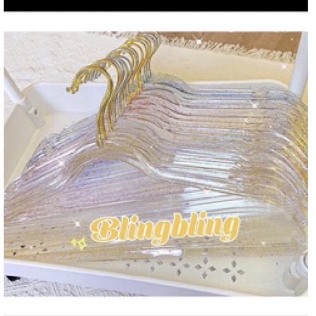 Combo 5 móc treo quần áo nhựa trong suốt lấp lánh móc mạ vàng siêu xinh