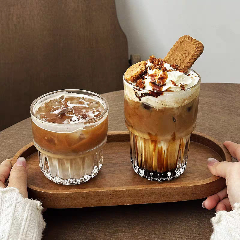 Ly thủy tinh 160ml 250ml 320ml, Cốc thủy tinh sọc đáy 2 tầng chịu nhiệt uống trà, cafe, sinh tố