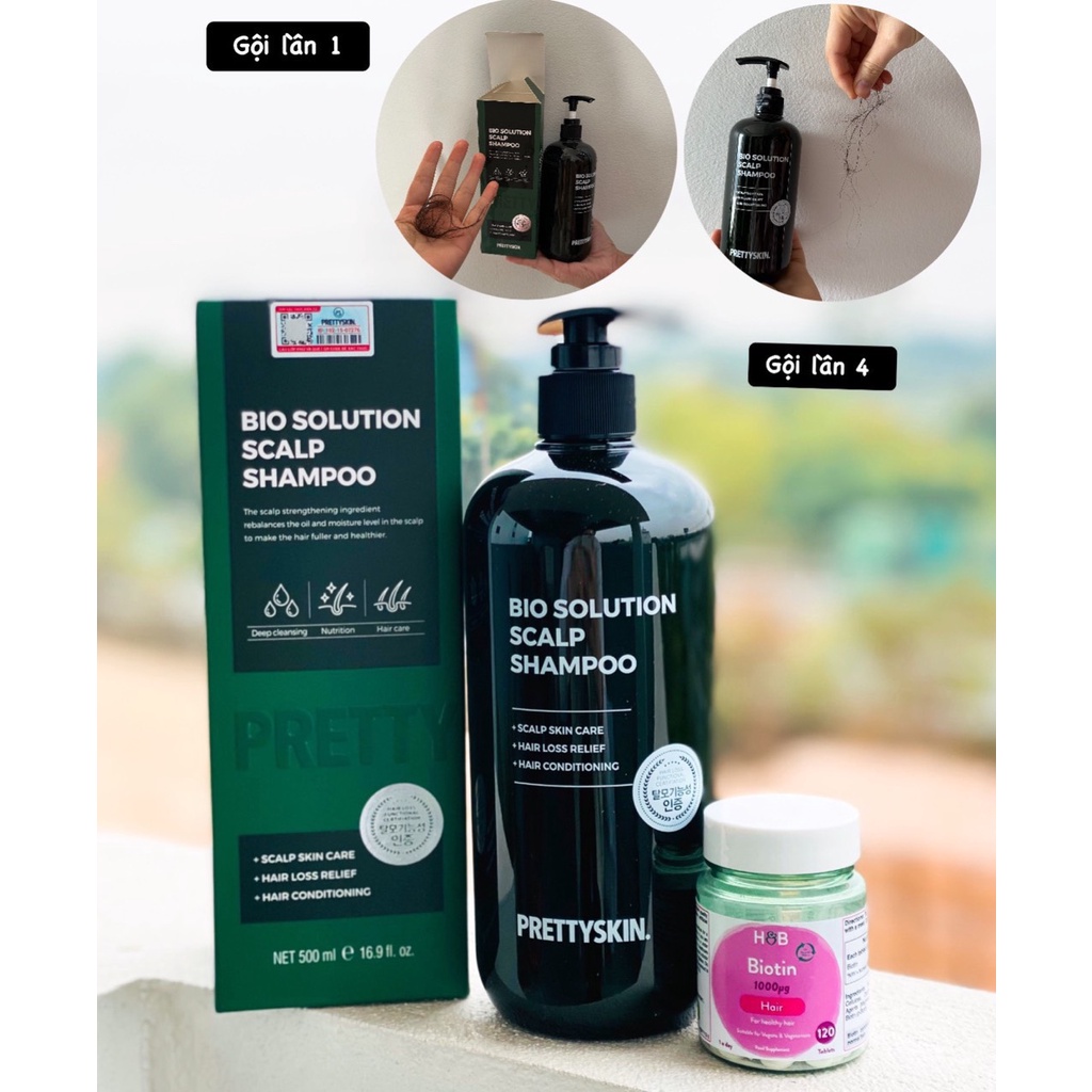 Dầu Gội Xả Pretty Skin prettyskin Bio Solution Scalp Shampoo Giảm Rụng Tóc Hỗ Trợ Mọc Tóc 500ml