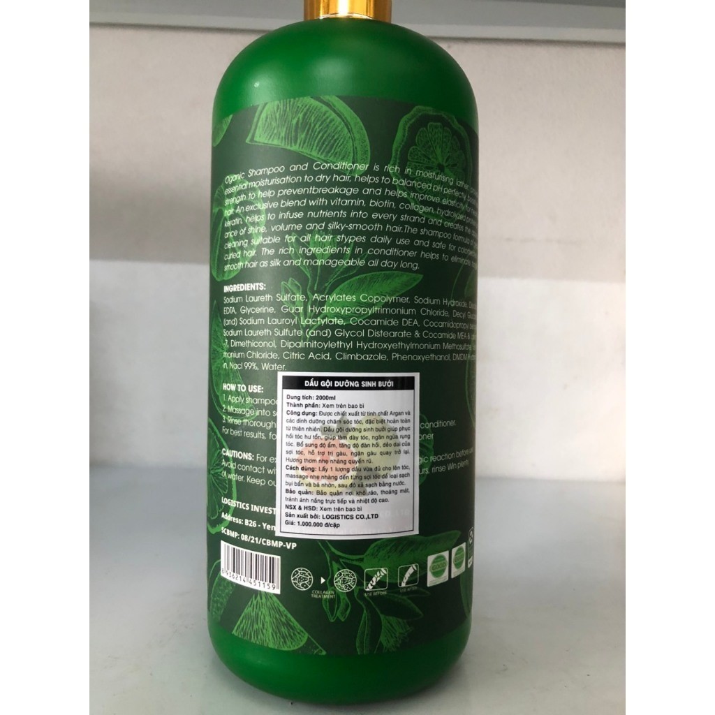 Dầu gội bưởi Grapefruit Organic 2000ml giảm rụng tóc, kích mọc tóc và phục hồi hư tổn chính hãng Minh Anh Hair Stores