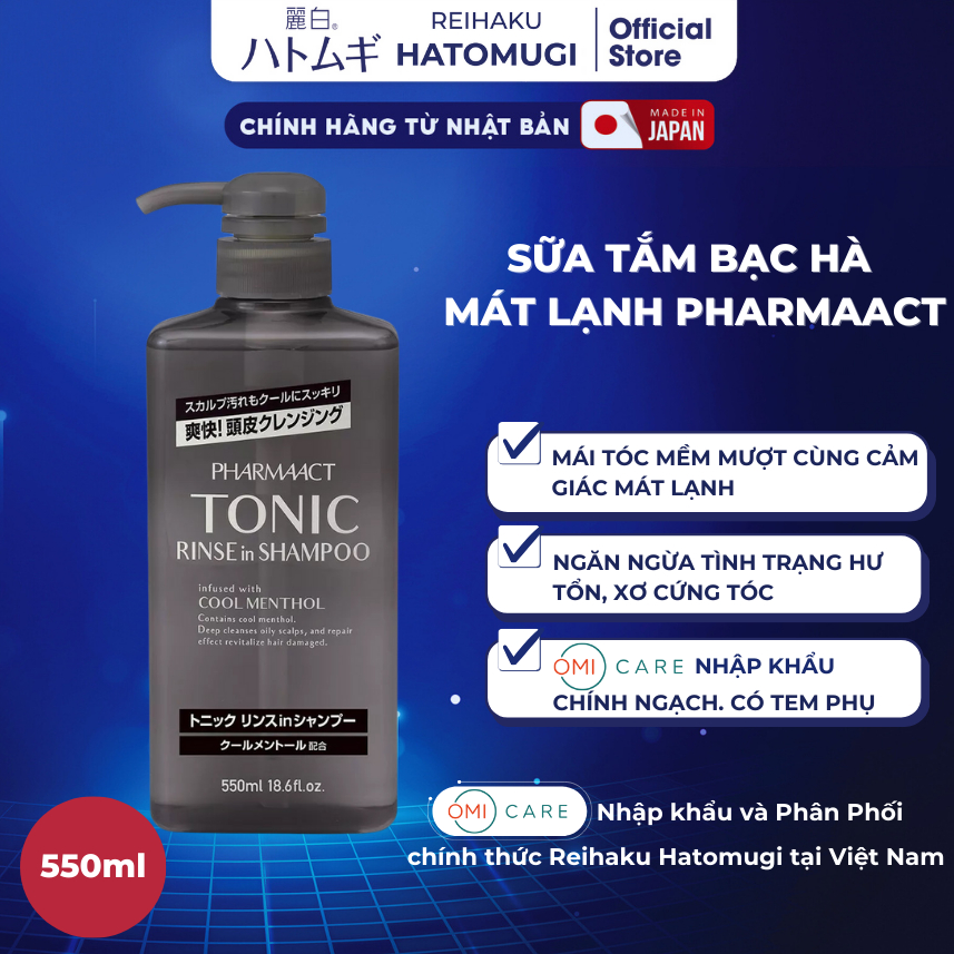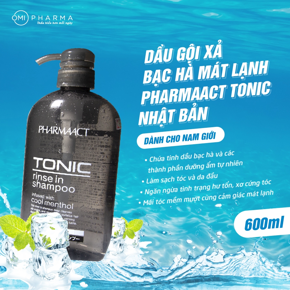 [MEGA SALE 4-4] Dầu Gội Xả Cho Nam Bạc Hà Mát Lạnh Pharmaact Tonic Rinse In Shampoo (550ml)