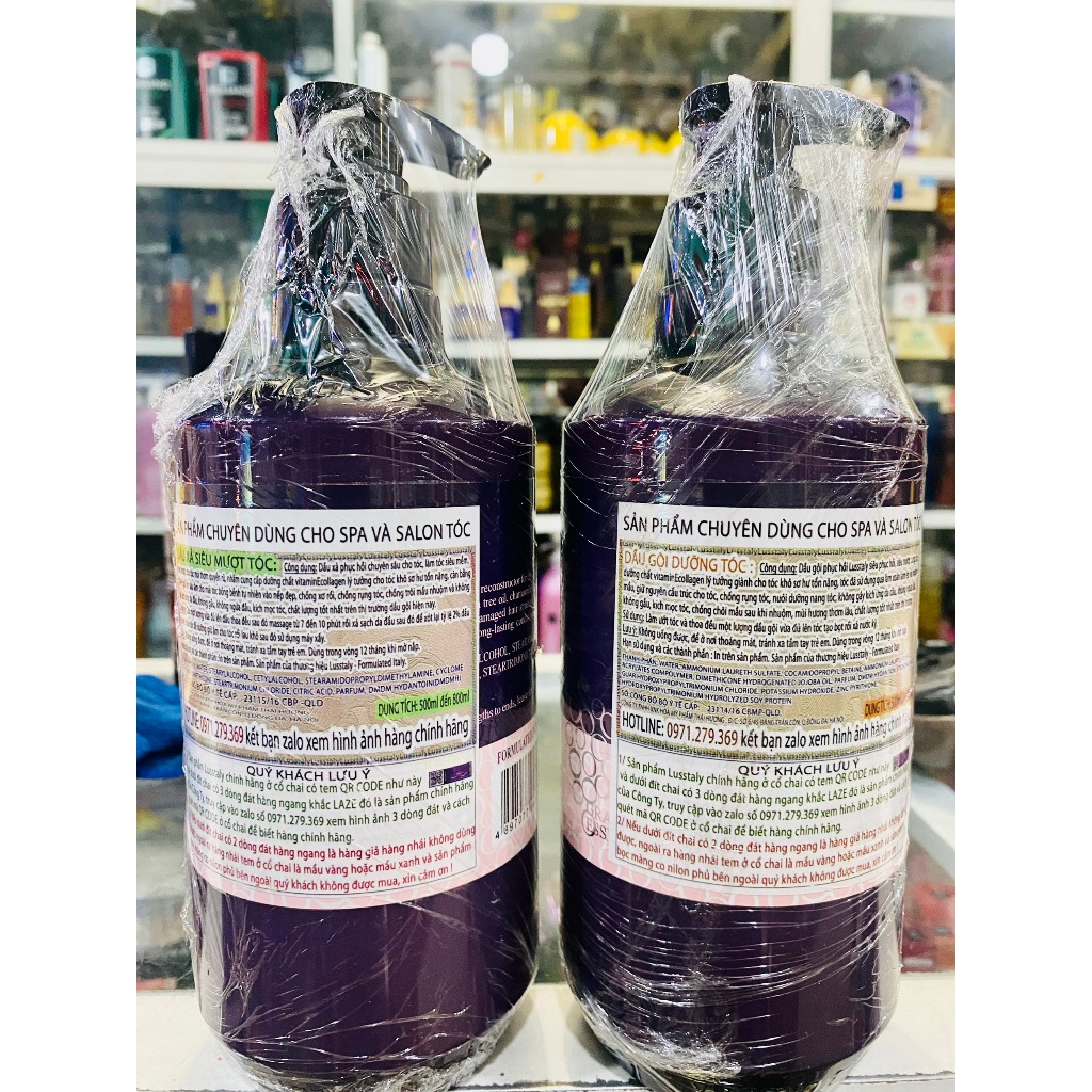 Dầu gội xả chăm sóc tóc Lusstaly bổ sung Collagen Vitamin E phục hồi tóc hư tổn 800ml