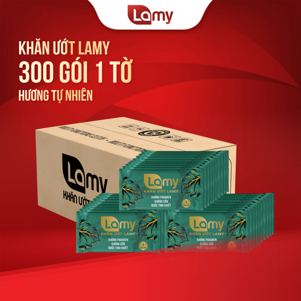 [LAMY OFFICIAL]_Thùng 300 cái khăn lạnh cao cấp khổ lớn Lamy gói 1 tờ hương tự nhiên