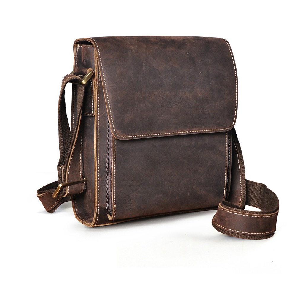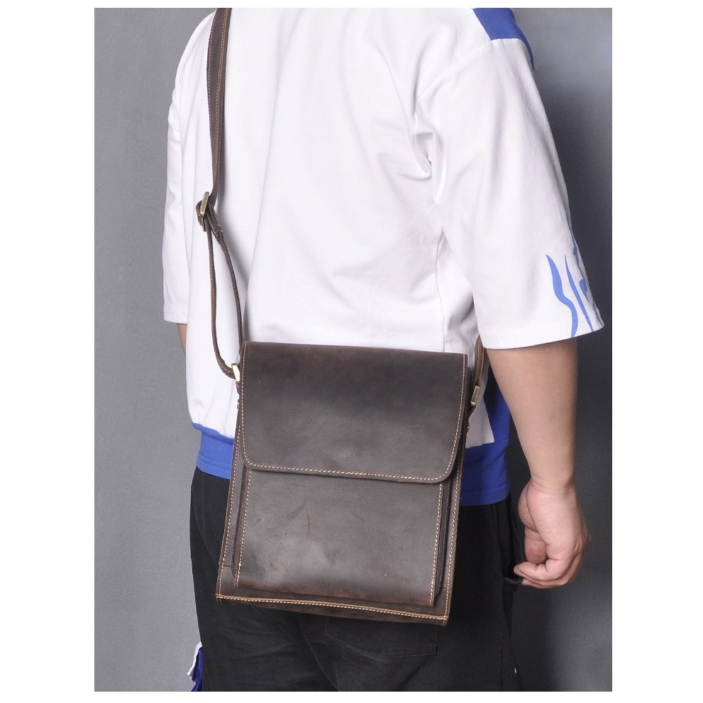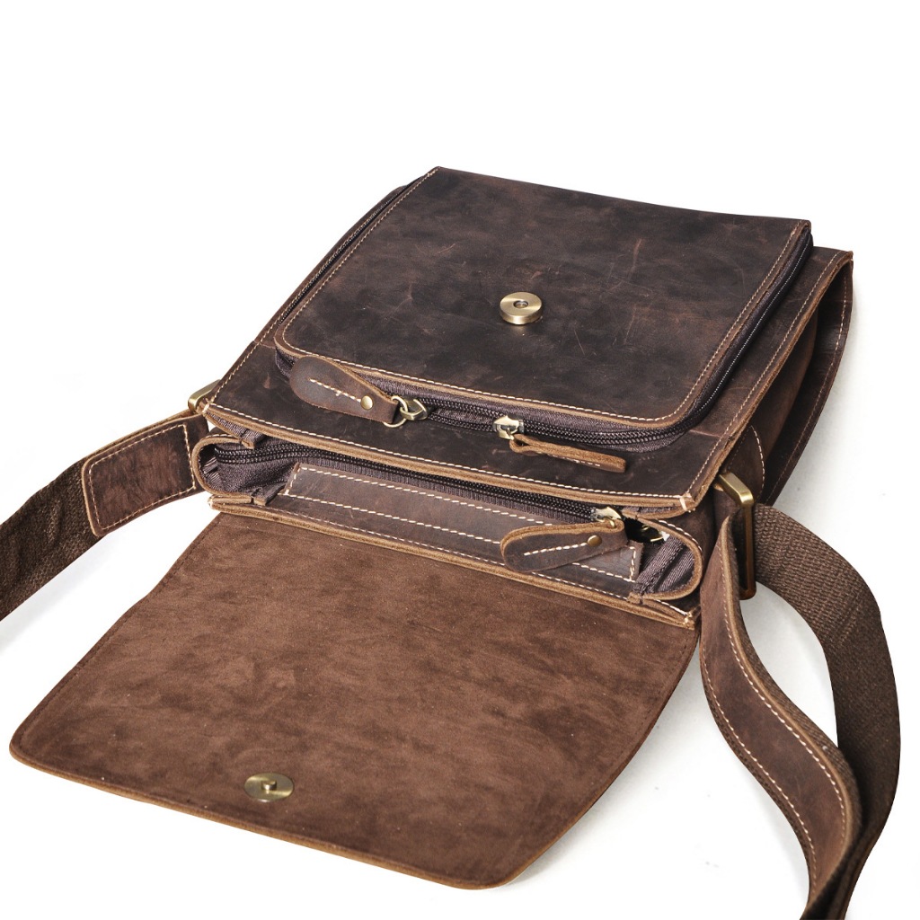 [Freeship] Túi chéo nam da bò sáp TD128VB (Nâu sáp) - 100% da thật, BH 3 năm