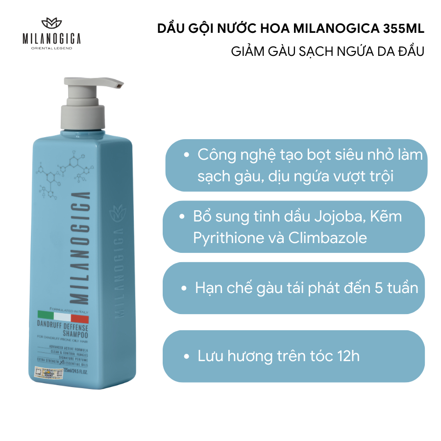 Bộ Dầu Gội Xả Giảm Gàu sạch ngứa da đầu Milanogica 355ml/725ml - lưu hương đến 12h