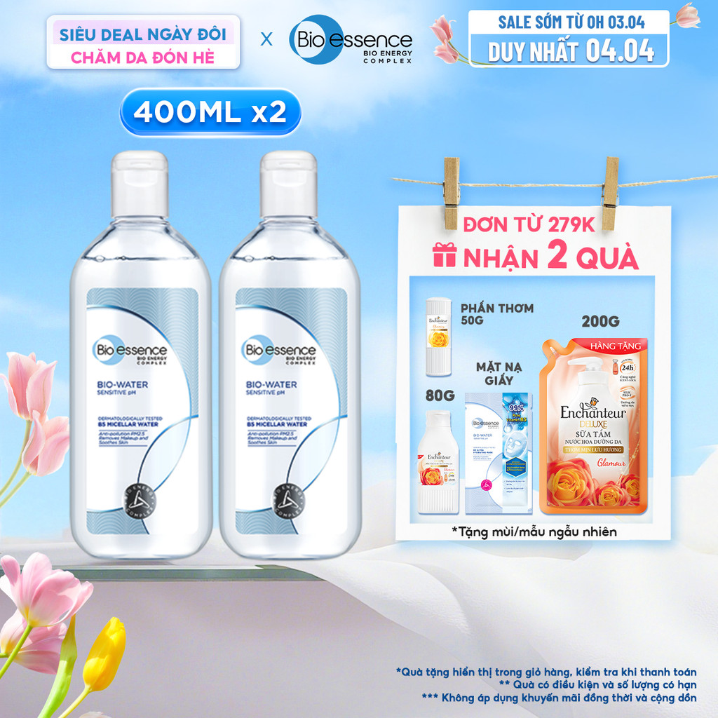 Combo 2 Nước tẩy trang ẩm mượt mịn màng Bio-Essence BioWater Micellar 400ml