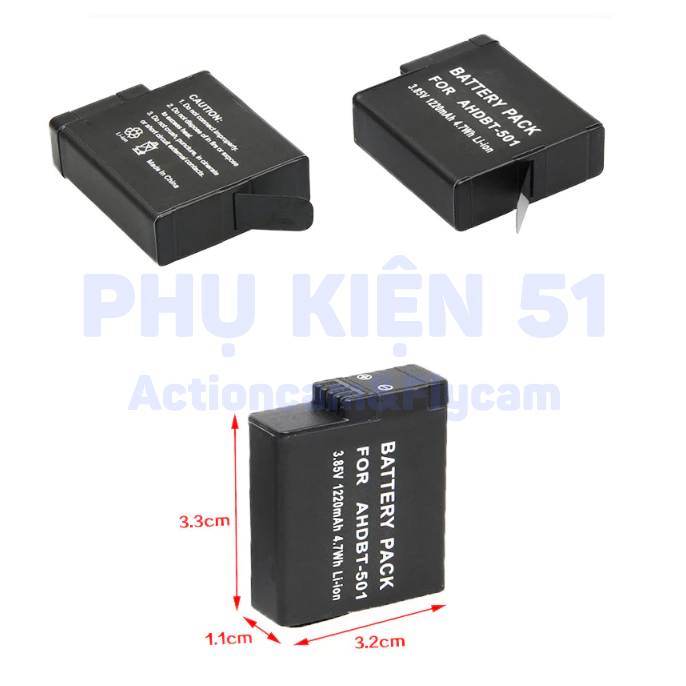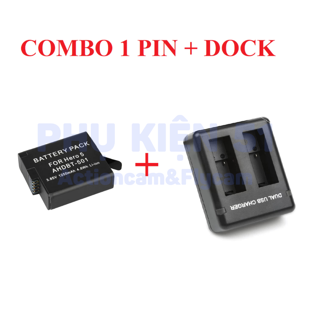 Hộp sạc, Pin AHDBT-501 cho camera GoPro Hero 5 6 7 LI-ION dung lượng 1250mAh