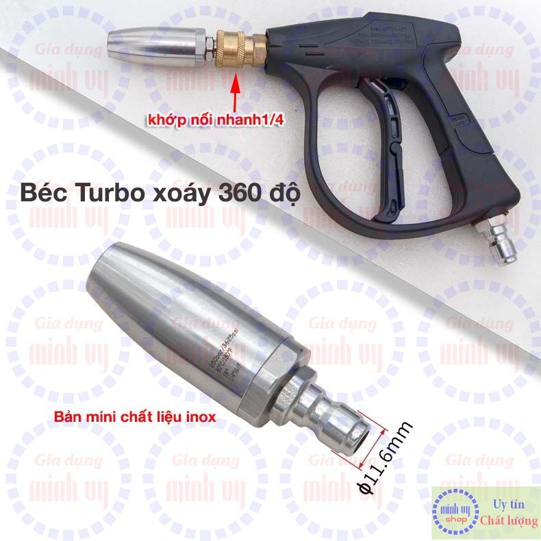 Béc turbo xoáy 360 độ mẫu nhỏ gọn chất liệu INOX cao cấp dùng cho máy xịt rửa xe cao áp chịu áp 250bar