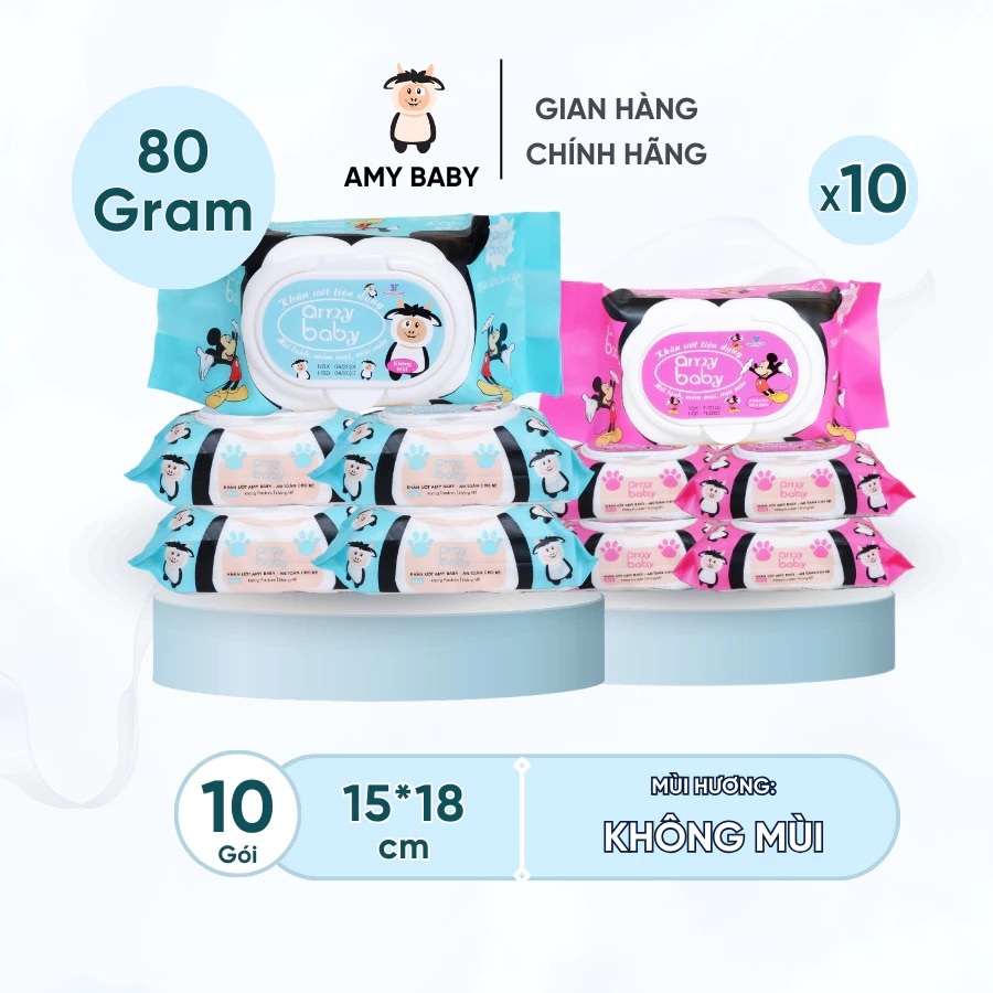 Combo 10 Gói Khăn Ướt Amy Baby 80gr
