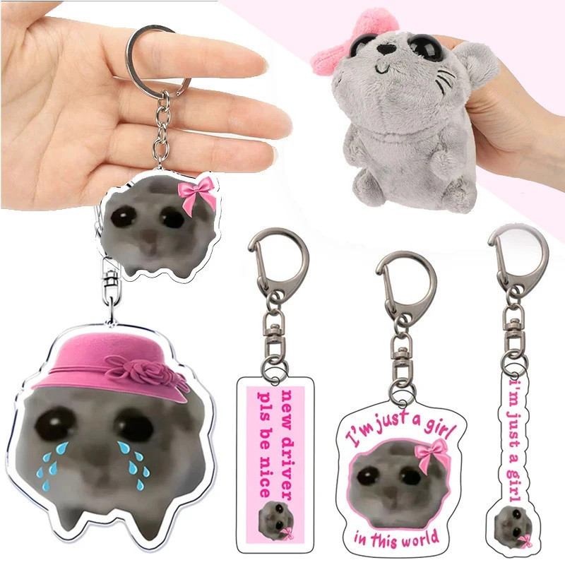 MK Phổ Biến Dễ Thương Màu Hồng Nơ Hamster Keychian Vui Nhộn Meme Im Just A Girl Sad Hamster Móc Khóa Phụ Kiện Tặng NLP
