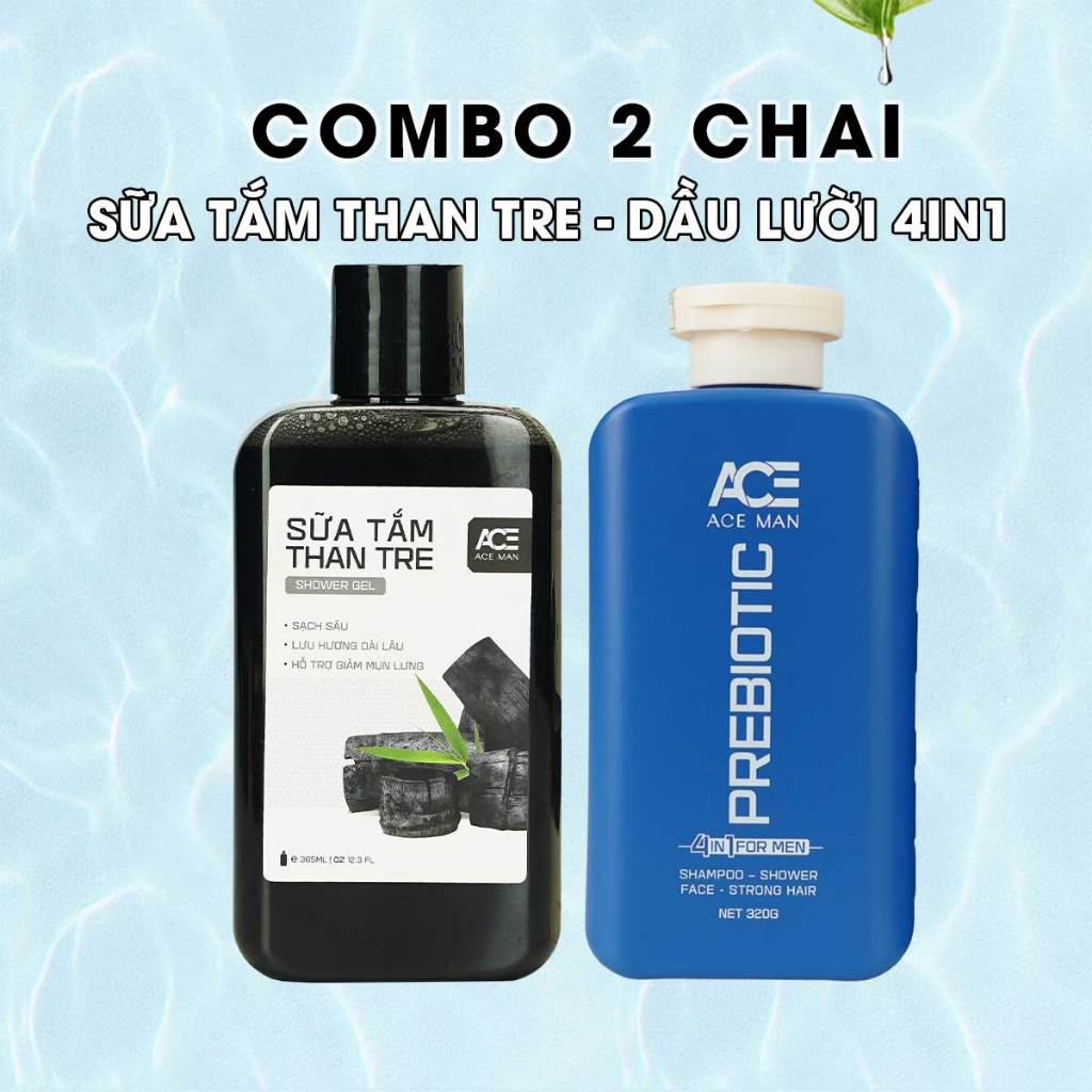 Dầu lười 4 IN 1 For Men ACEMAN Prebiotic 320G Dầu gội, rửa mặt, tắm, dưỡng tóc chắc khỏe suôn mượt