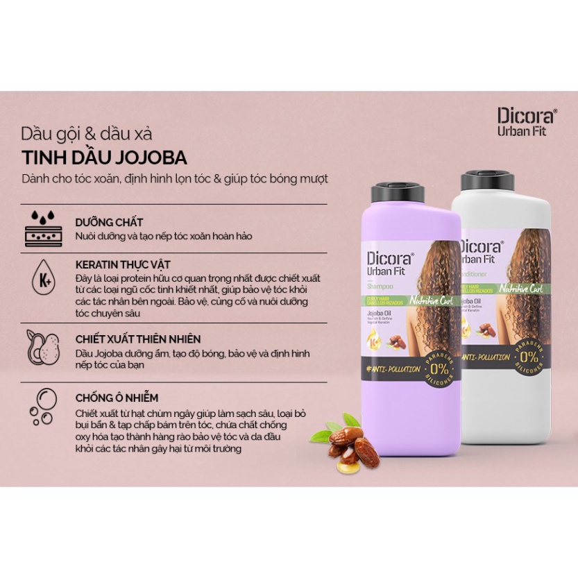 Dầu gội Dicora Urban Fit dành cho tóc xoăn chiết xuất tinh dầu Jojoba giúp làm sạch tóc và da đầu 400ml