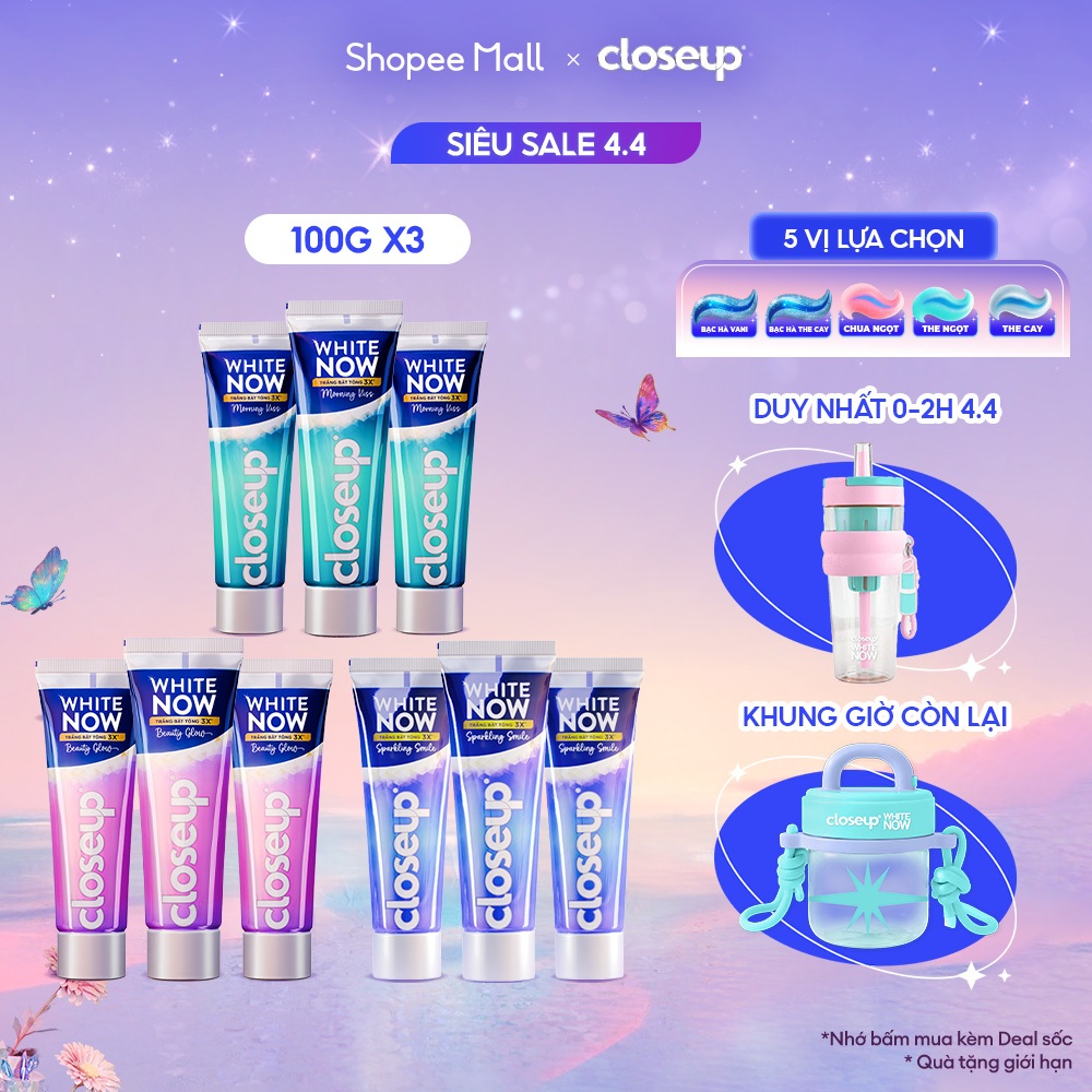 Combo 3 Kem đánh răng Closeup White Now - Trắng Bật Tông 3X TỨC THÌ với Công nghệ Ánh Sáng Xanh 100g