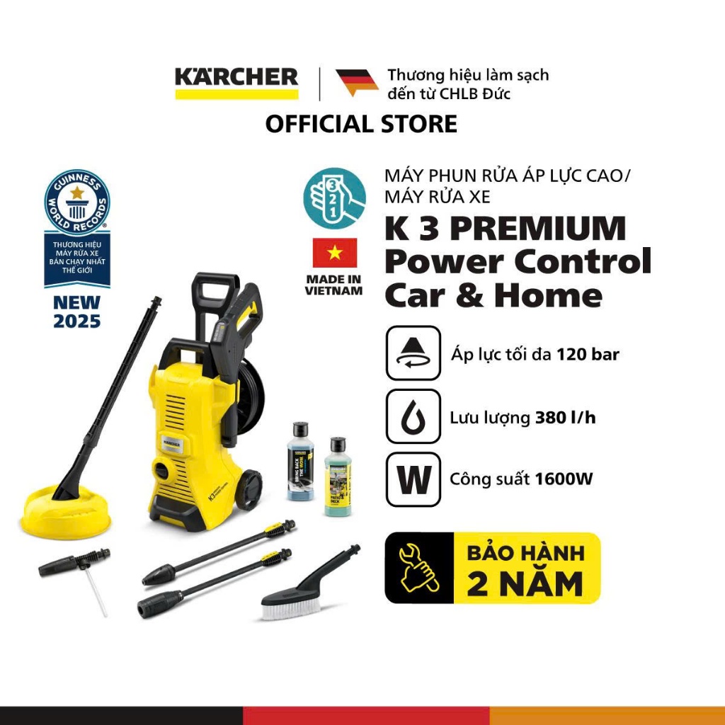 Máy phun rửa áp lực cao Karcher K 3 Premium Power Control Car & Home - Công suất 1600W, áp lực 120ba - Bảo hành 24 tháng