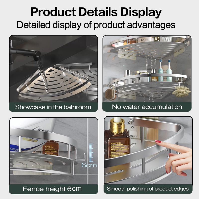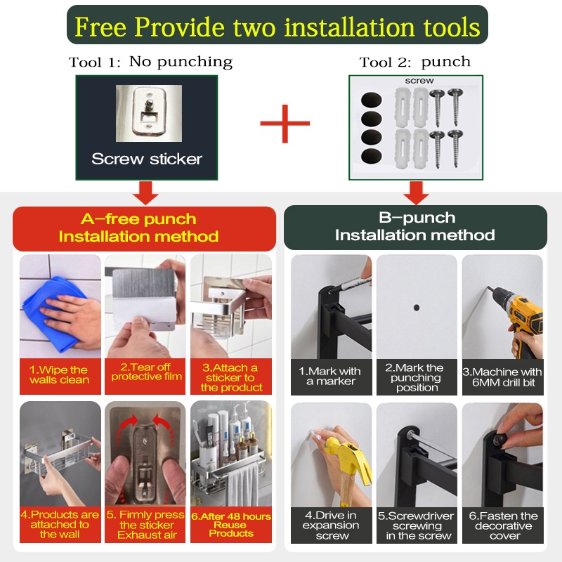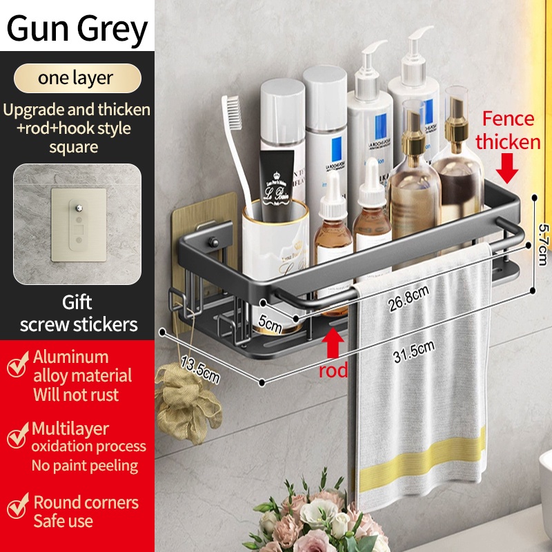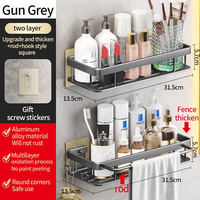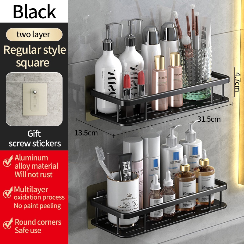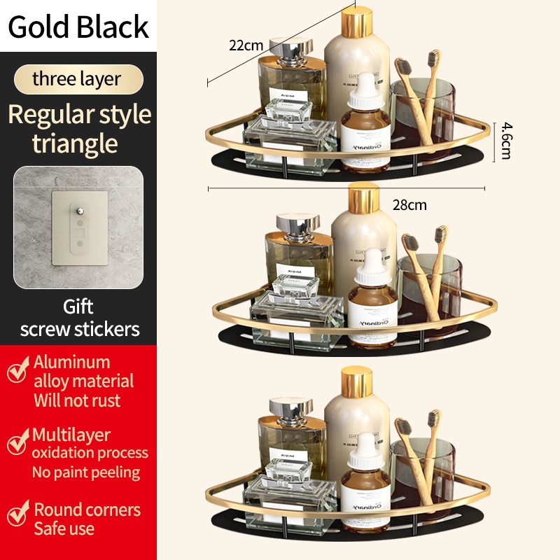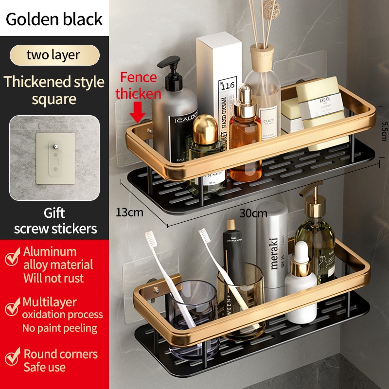 YUN JIE YA Giá Đỡ Dầu Gội Bằng Nhôm Màu Vàng Đen Gắn Tường Không Cần Khoan Tiện Dụng Cho Nhà Bếp / Phòng Tắm