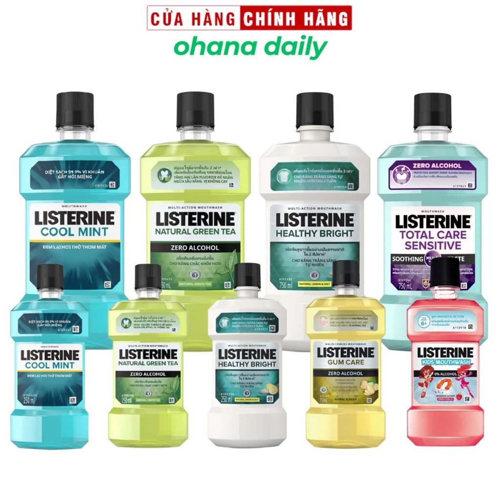 Nước Súc Miệng Listerine Diệt Khuẩn, Thơm Mát, Trắng Sáng Răng (100ml/250ml/750ml)