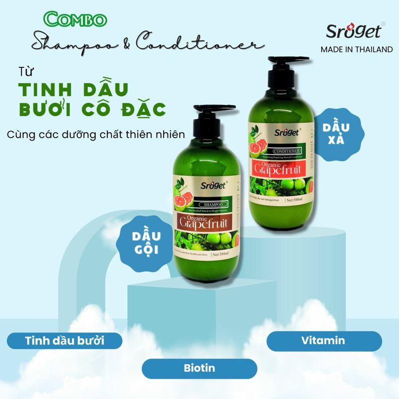 Bộ Dầu Gội Xả Tinh Chất Bưởi Sroget - Giảm Gãy Rụng Tóc, Kích Thích Mọc Tóc - 588ml - Nhập Thái Lan