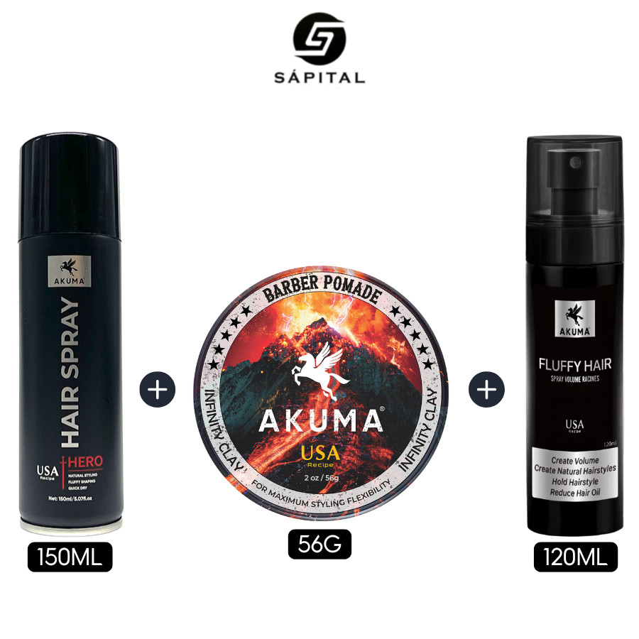 Gôm xịt tóc AKUMA HERO 150ml - Gôm mềm giữ nếp linh hoạt, dễ dàng chỉnh form, không bóng
