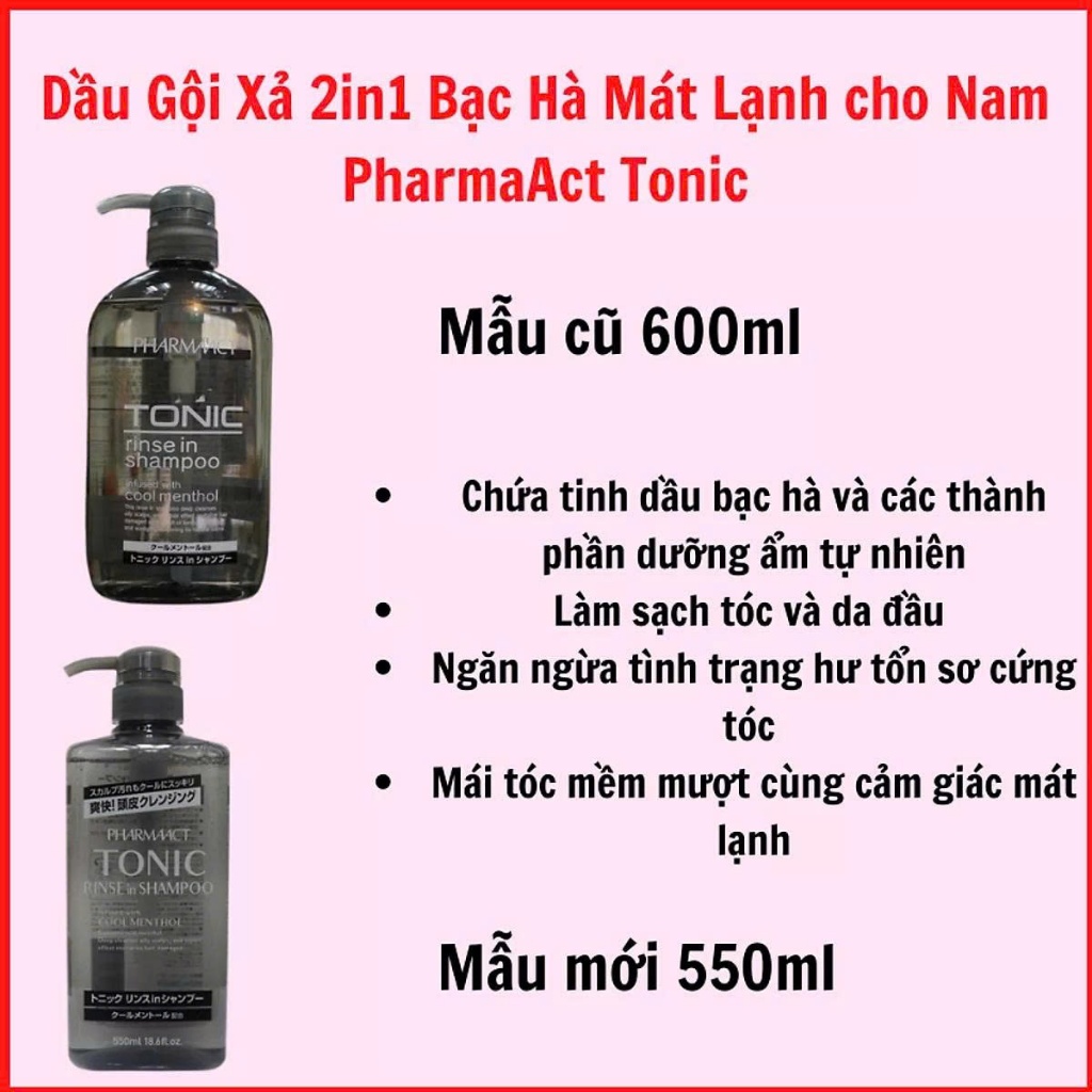 Dầu gội nam Tonic Pharmaact bạc hà mát lạnh loại bỏ sạch gàu cho nam giới Nhật Bản 550ml