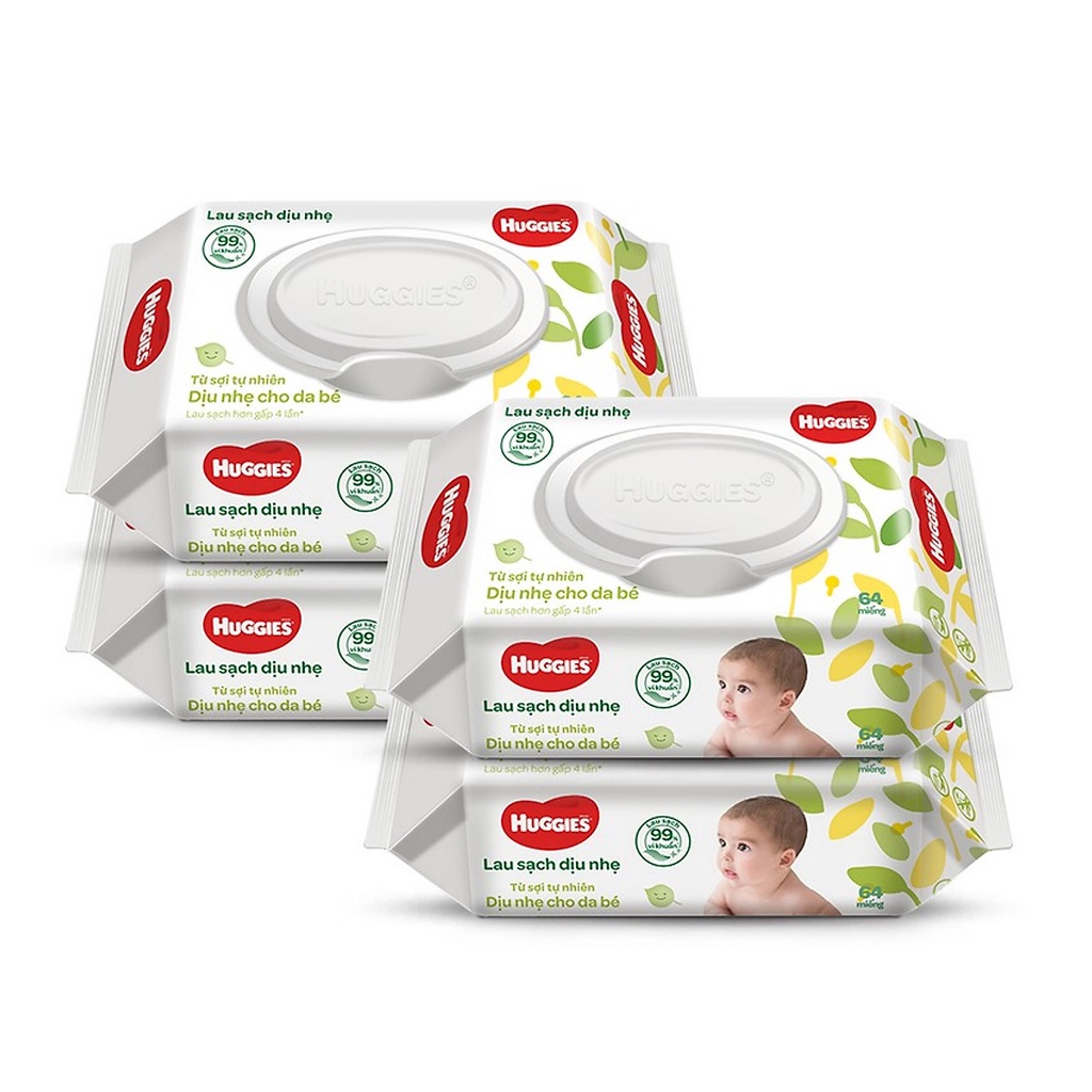 [Deal Siêu Rẻ] Combo 4 Gói Khăn giấy ướt cho trẻ sơ sinh Huggies không mùi, gói 80 tờ