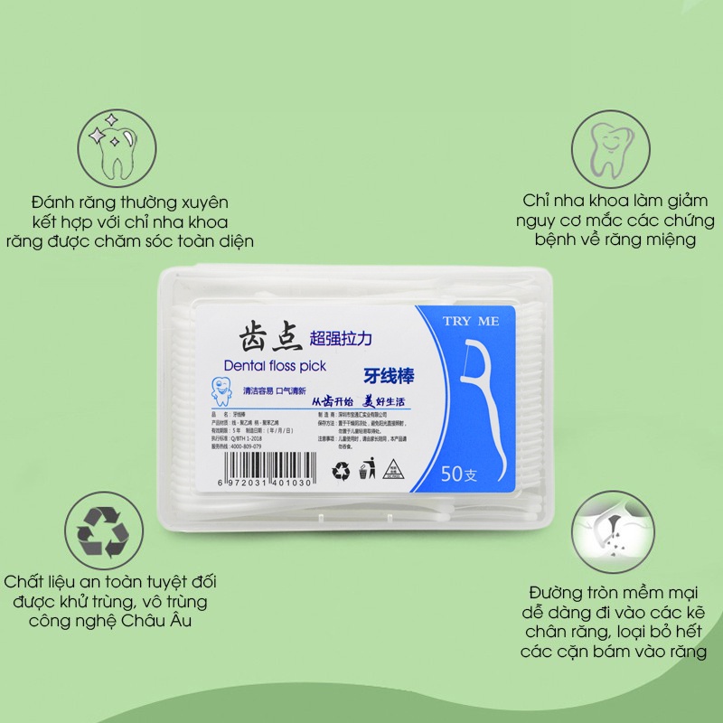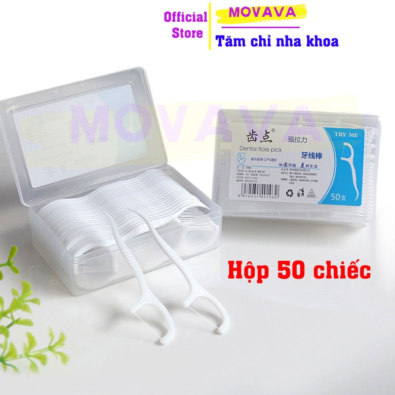 Tăm chỉ nha khoa bảo vệ răng miệng và chống thưa kẽ chân răng hộp 50 chiếc - Movava