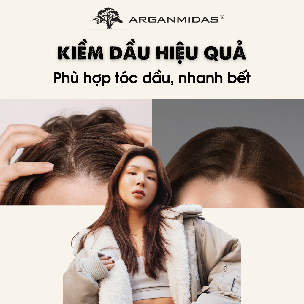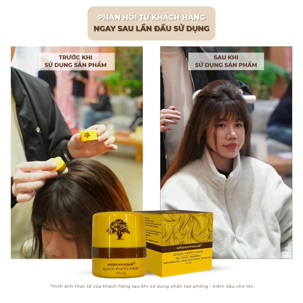 Phấn kiềm dầu tạo phồng chân tóc Arganmidas, phấn gội khô giúp tóc bồng bềnh