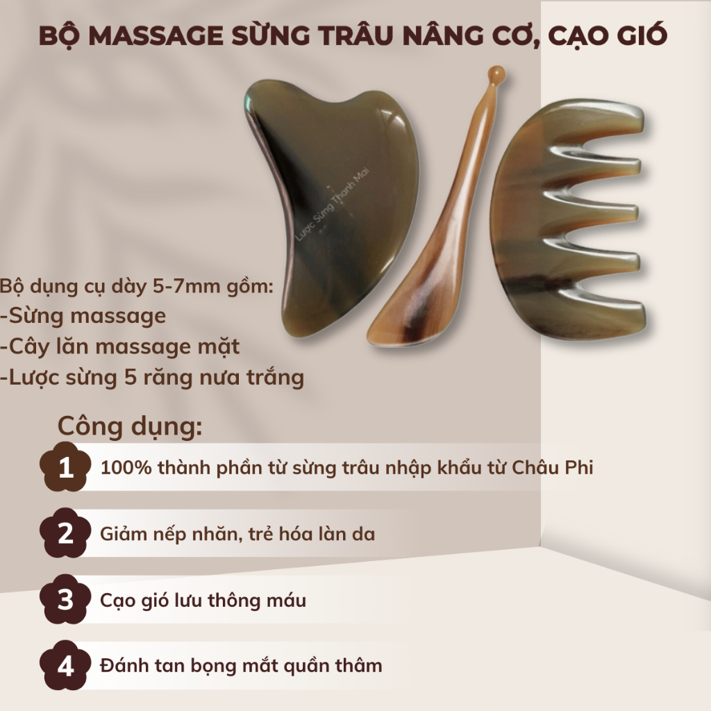 Dụng cụ massage mặt, sừng massage mặt nâng cơ xóa nếp nhăn, giảm quầng thâm bọng mắt trẻ hóa da