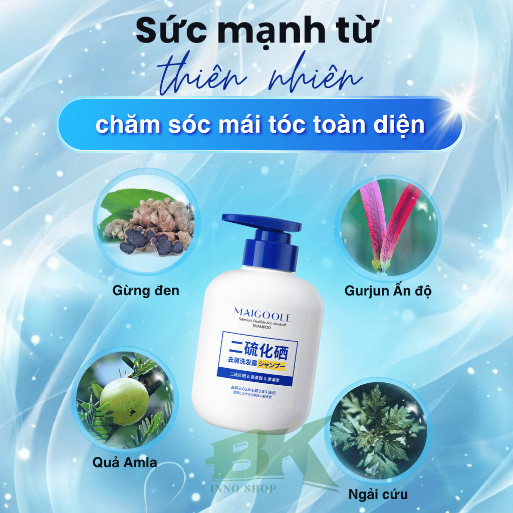 DẦU GỘI NẤM DA ĐẦU MAIGOOLE 300ML – LÀM SẠCH DA ĐẦU, GIẢM GÀU NGỨA, NGĂN BẾT TÓC, GỘI MÁT DỊU, HƯƠNG DỊU NHẸ BKINNO SHOP
