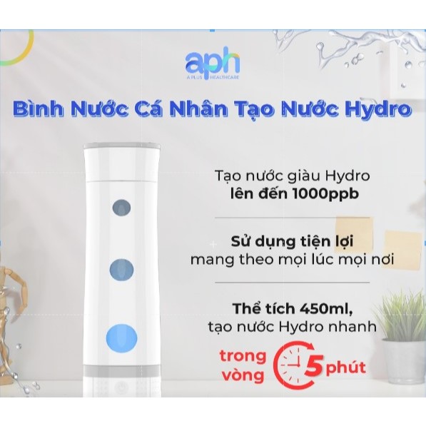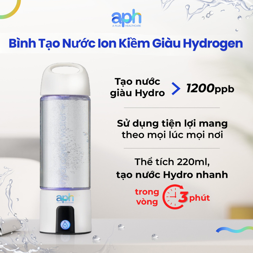 Bình Tạo Nước Ion Kiềm Hydrogen APH Traveler 1200ppb Chống Lão Hoá Giảm Cân Đẹp Da Thải Độc