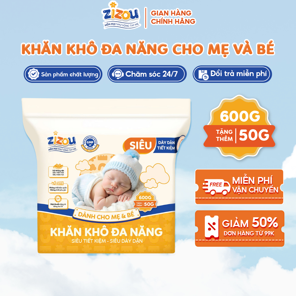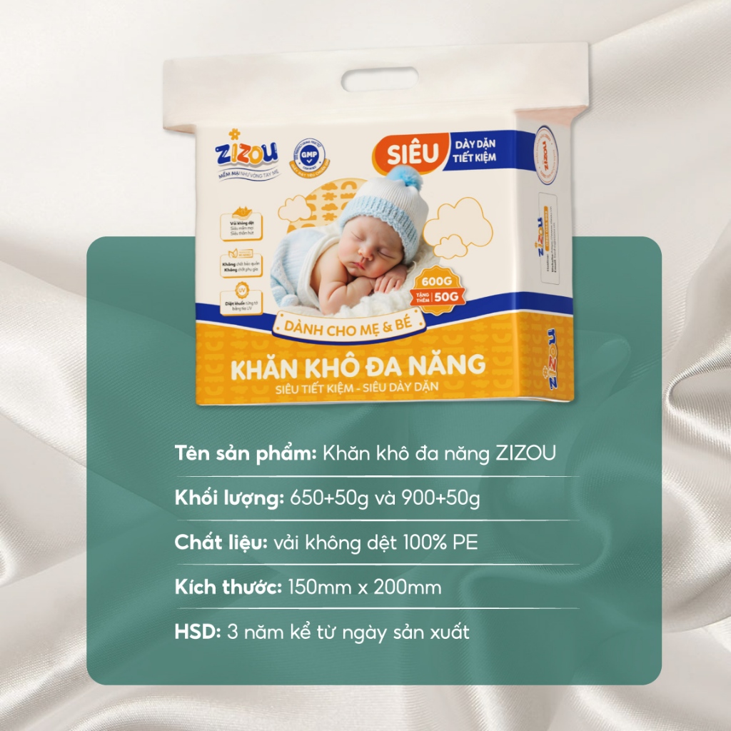 Khăn khô đa năng cho bé ZIZOU Cao Cấp dành cho mẹ và bé An toàn Dày Dặn Bề Mặt Chấm Bi Vải Không Dệt 900+50