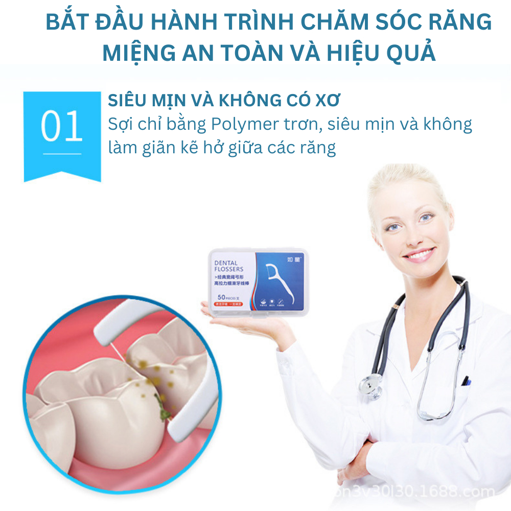 Combo 10 hộp Tăm Chỉ Nha Khoa Dental Flossers [Hàng Chuẩn] Hộp 50c Sợi Chỉ Mảnh Dai An Toàn Sức Khỏe