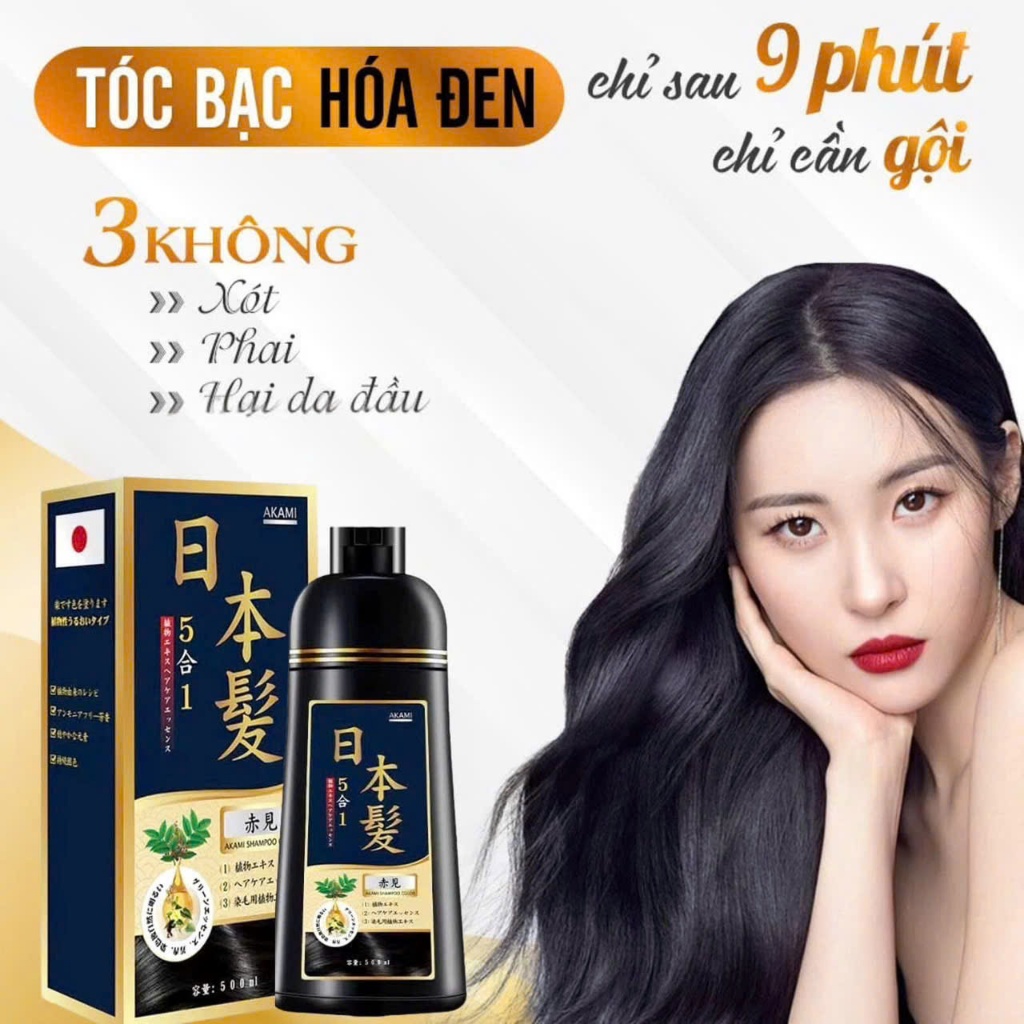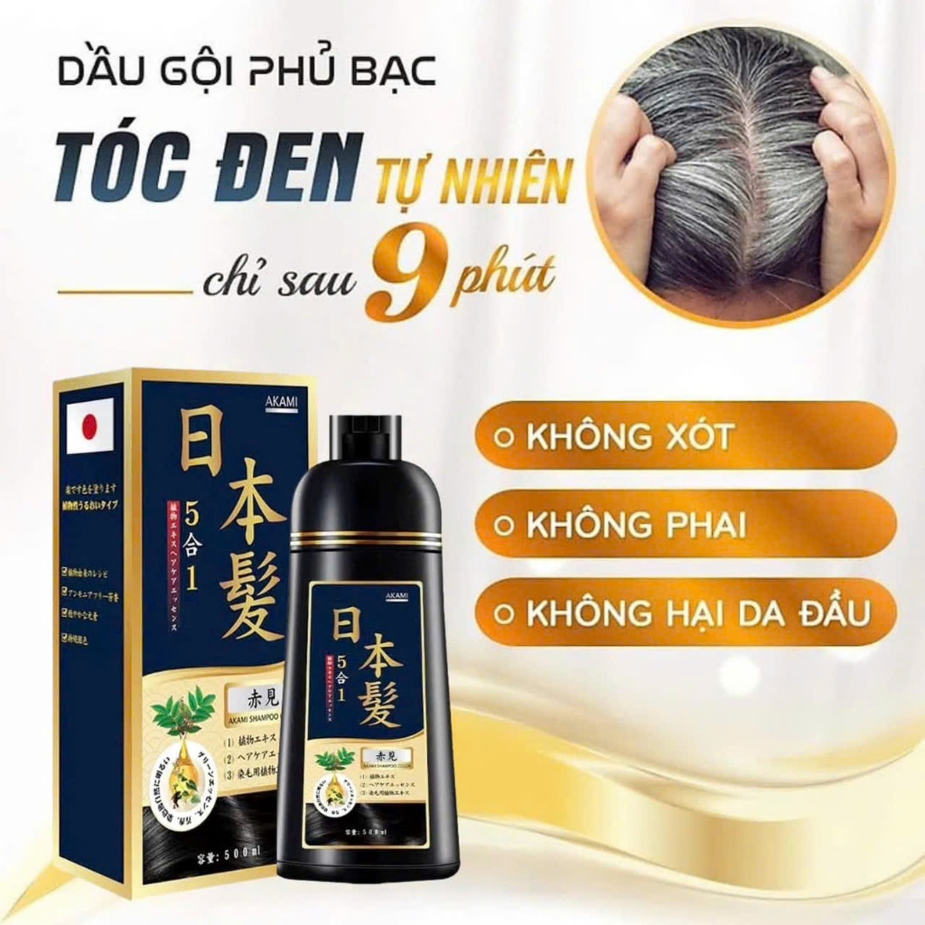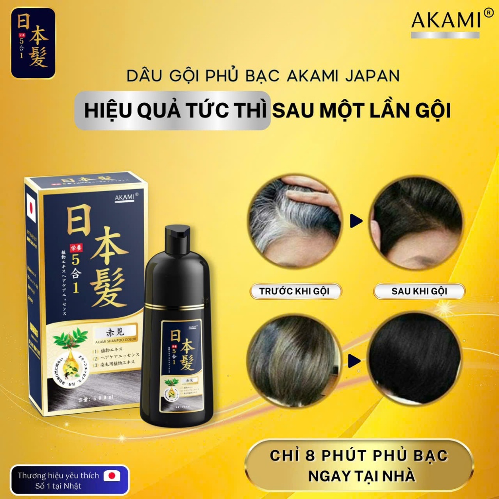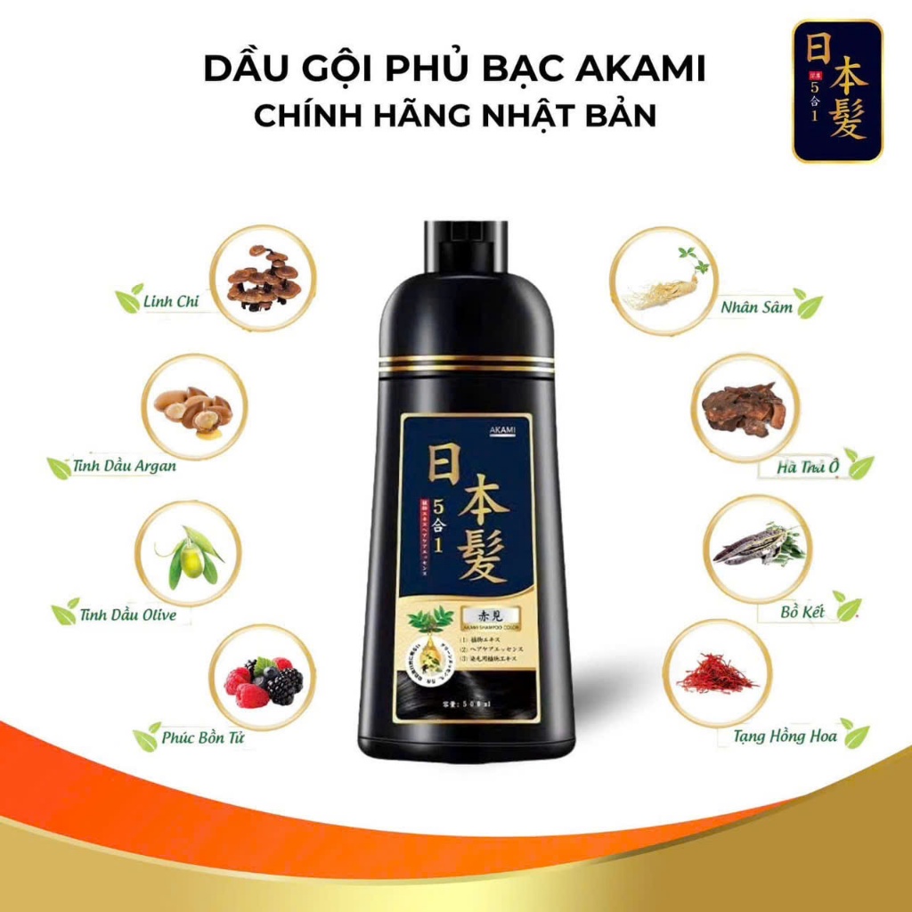 Dầu gội nhuộm tóc, dầu gội phủ bạc thảo dược Akami Nhật Bản không xót, không hại da đầu chai 500ml