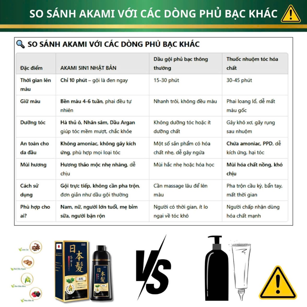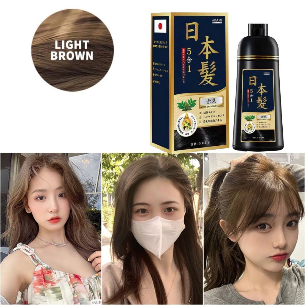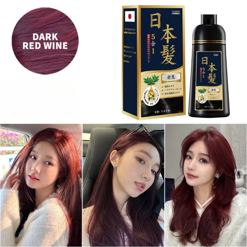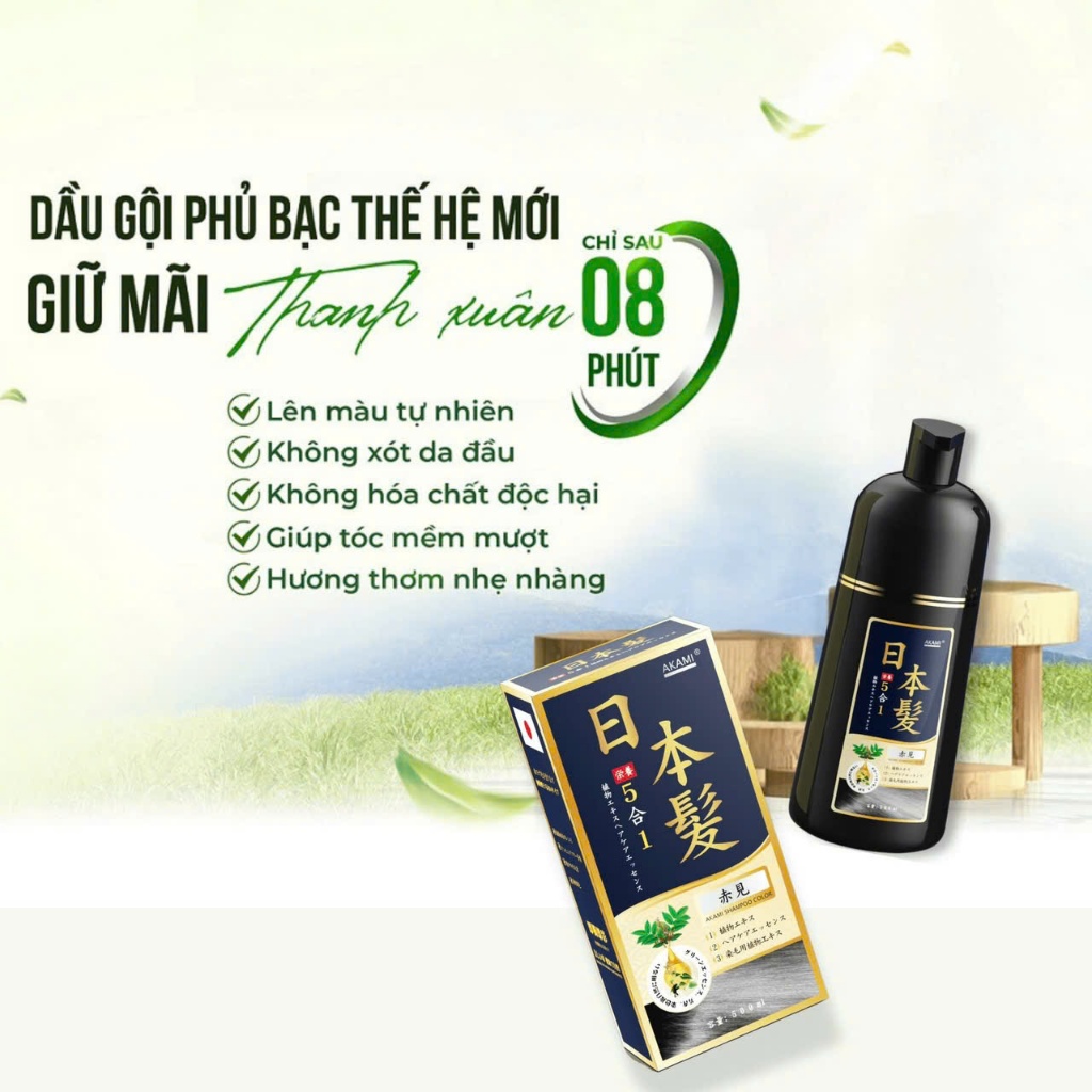 Dầu gội nhuộm tóc, dầu gội phủ bạc thảo dược Akami Nhật Bản không xót, không hại da đầu chai 500ml
