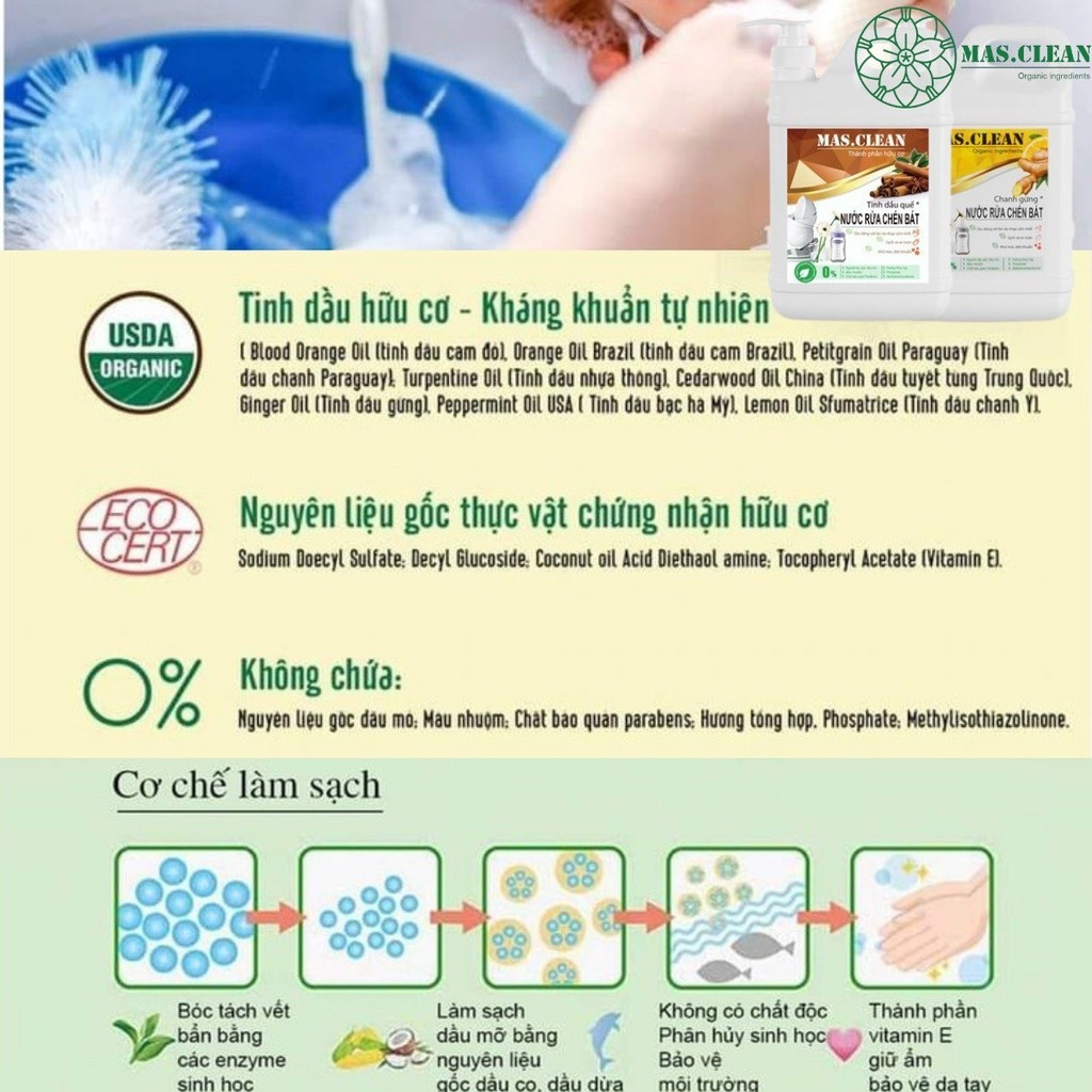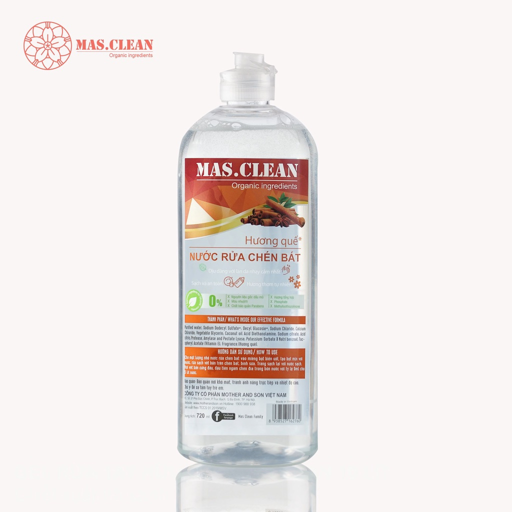 Nước Rửa Chén Bát Hữu Cơ Mas.Clean Gốc Thực Vật An Toàn Cho Da, Dầu Rửa Chén Bát Chai 720ml