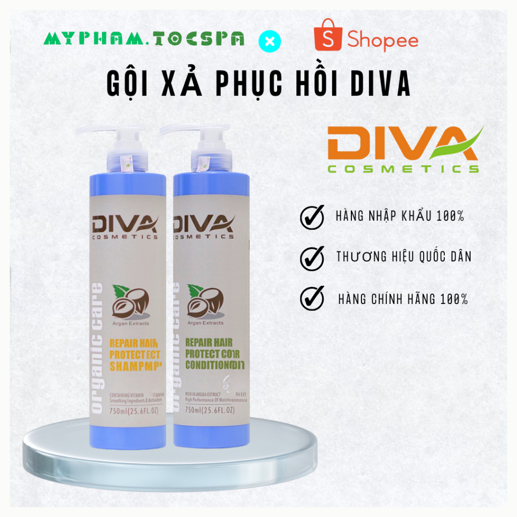 Gội Xả Diva 750ml Phục Hồi Hư Tổn Bảo Vệ Tóc Khỏi Tia UV Giữ Màu Tóc Mềm Mượt Myphamtocspa