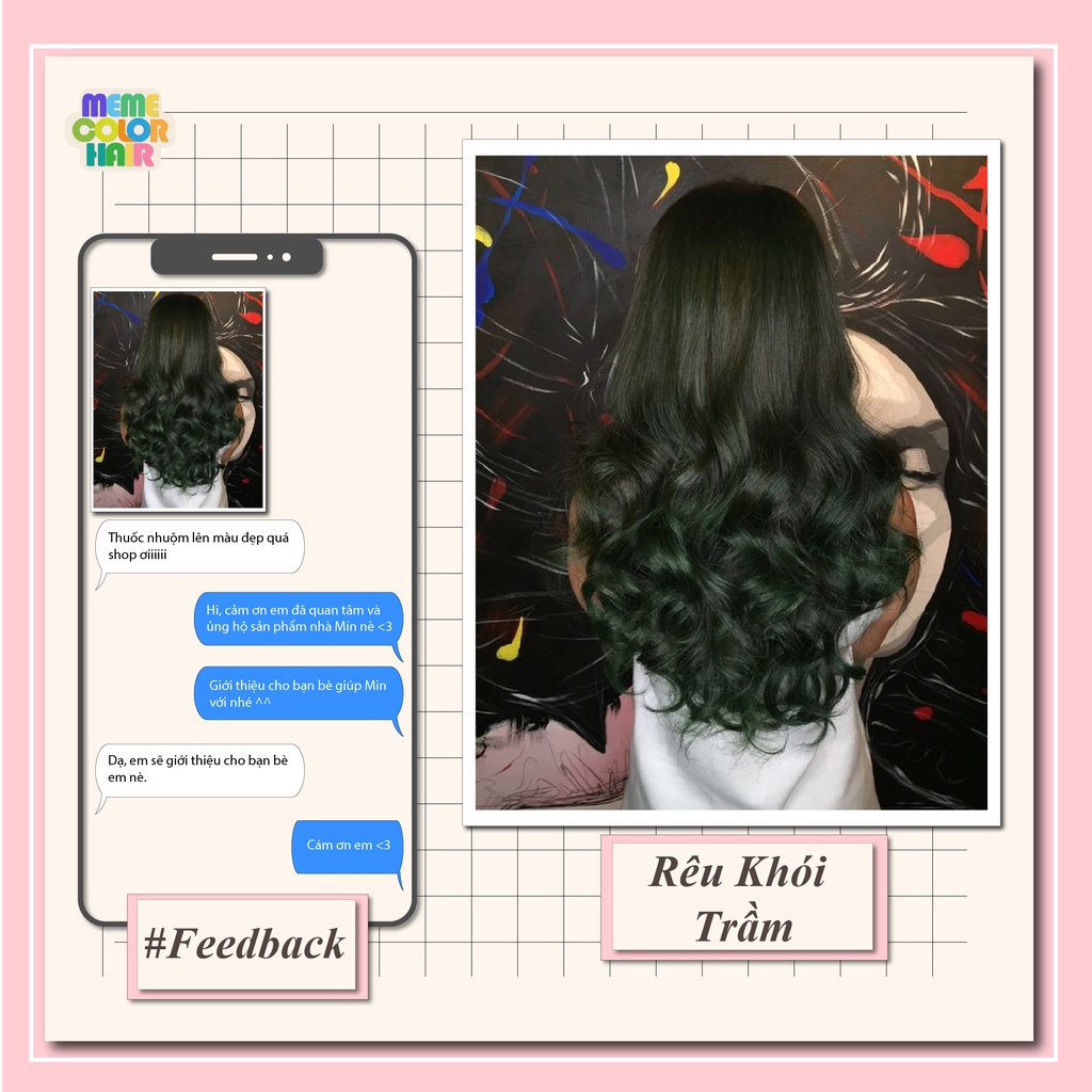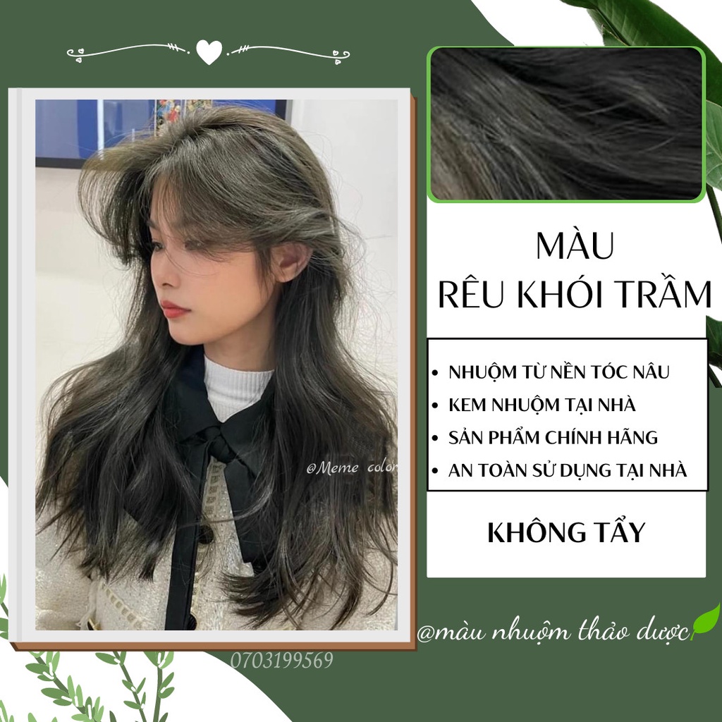 Thuốc nhuộm tóc màu rêu khói trầm , tặng kèm oxy trợ dưỡng và bao tay