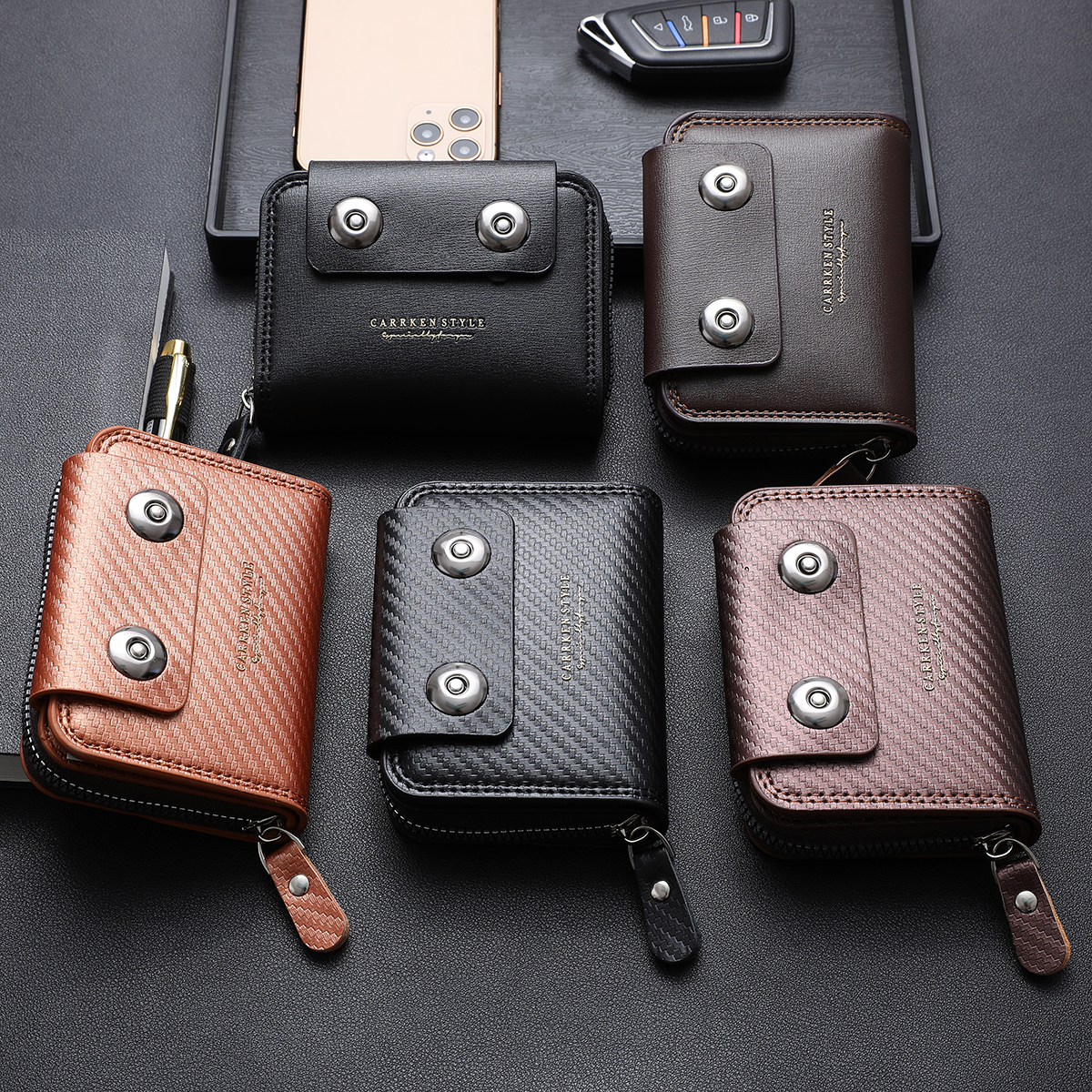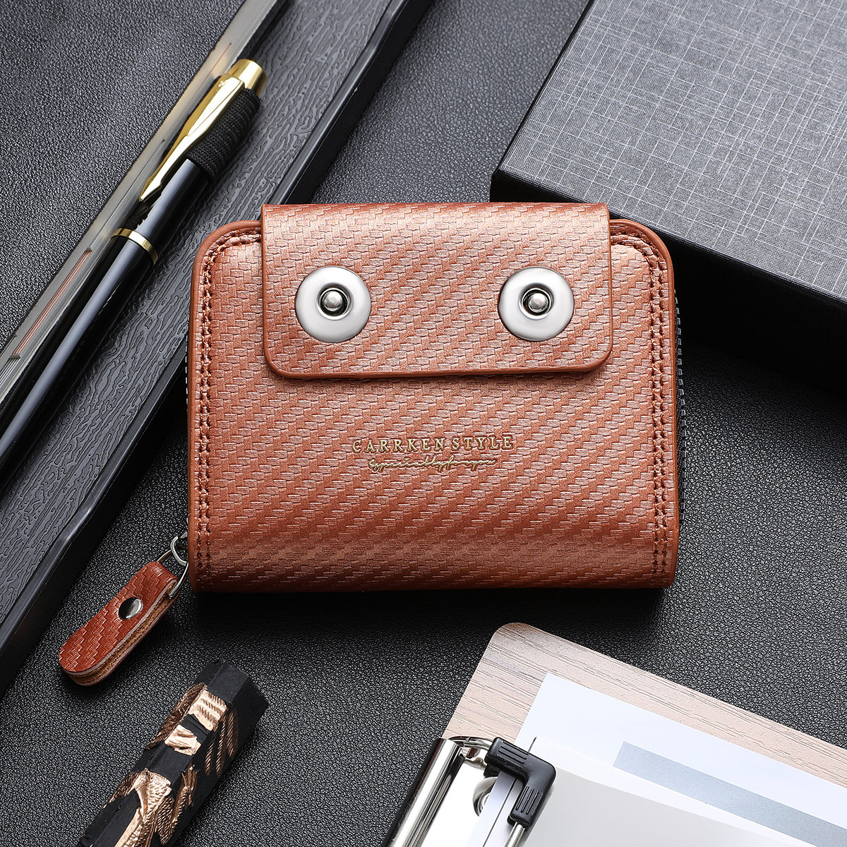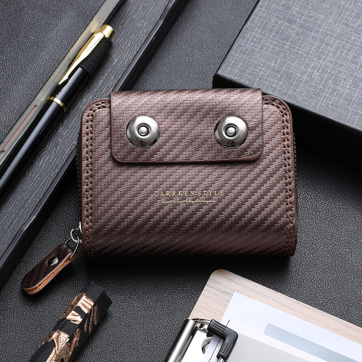 Ví Mini Da PU Dệt Cho Nam - Bộ Quà Tặng Kẹp Tiền Dây Kéo Nhiều Thẻ