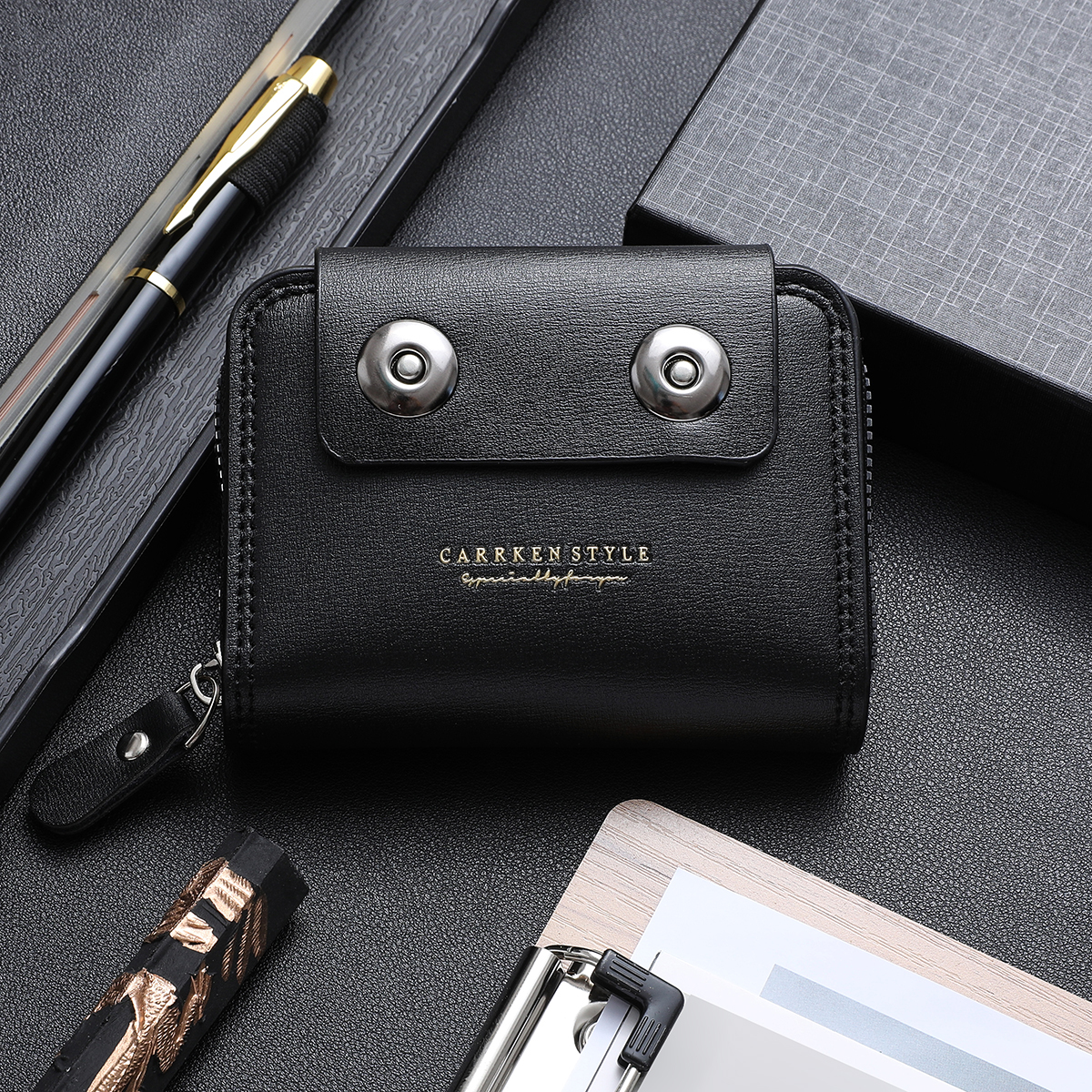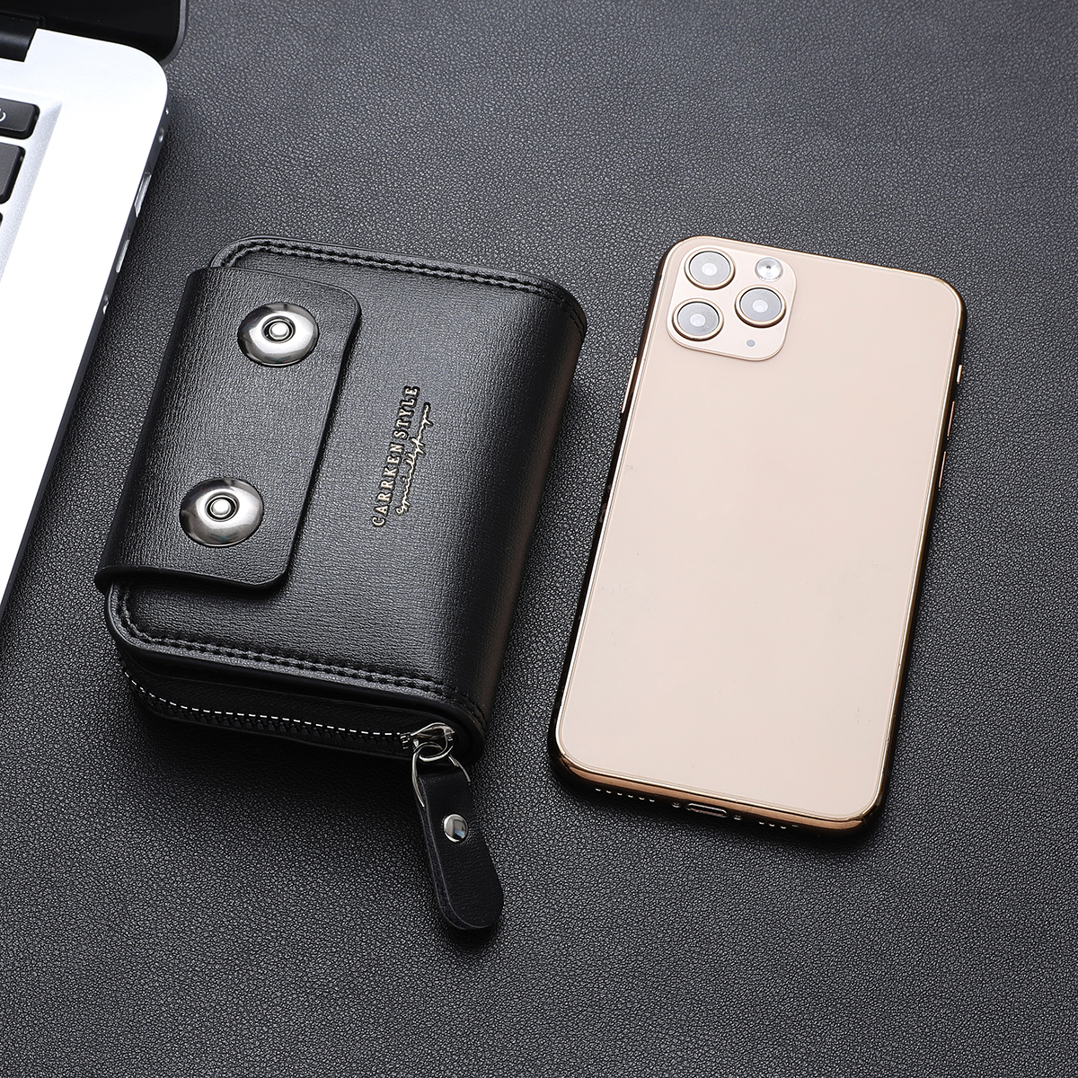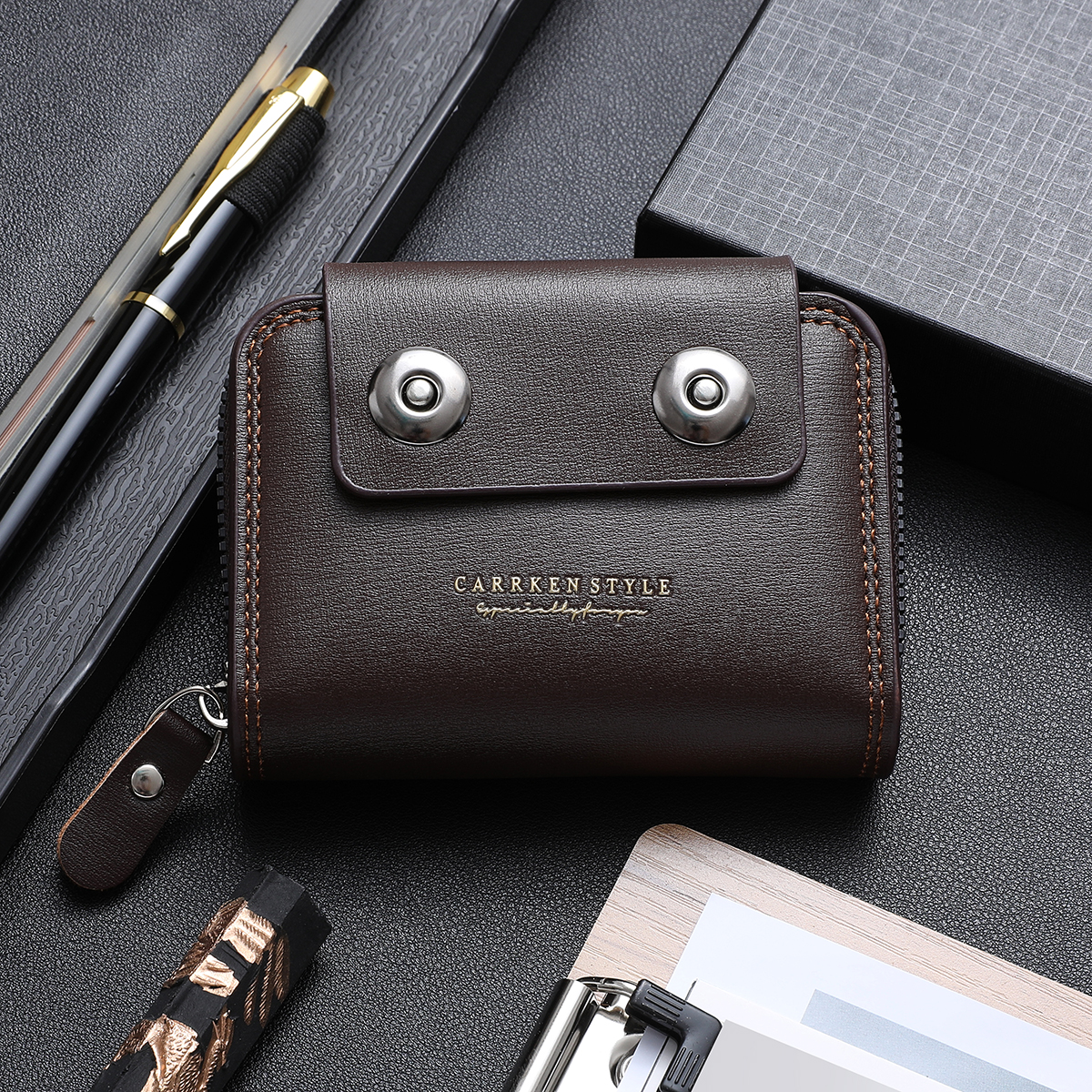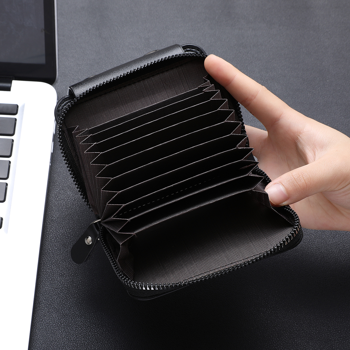 Ví Mini Da PU Dệt Cho Nam - Bộ Quà Tặng Kẹp Tiền Dây Kéo Nhiều Thẻ