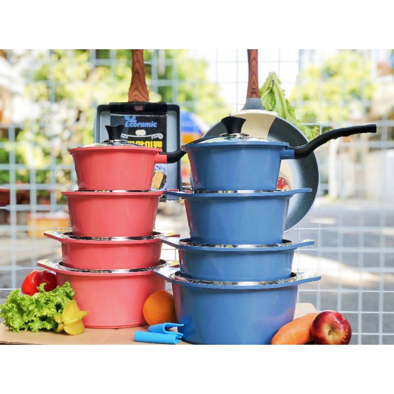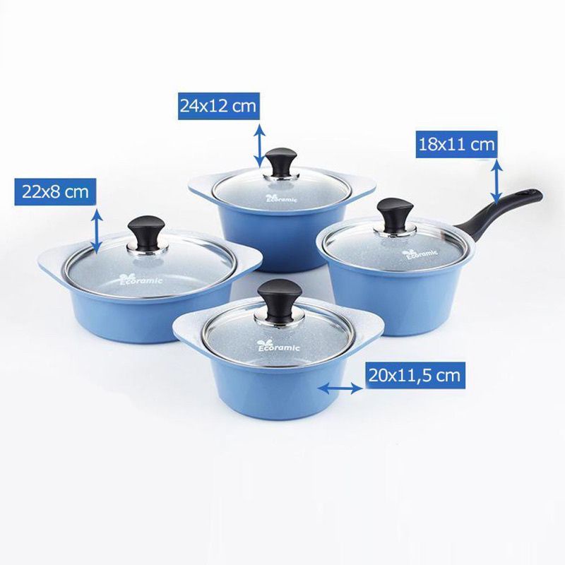 Bộ 4 Nồi Đá Đáy Từ V-Line Ecoramic Hàn Quốc Size 18-20-22-24 Cm Cam Kết Chính Hãng