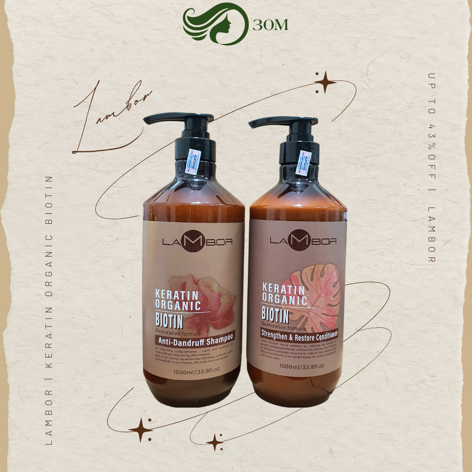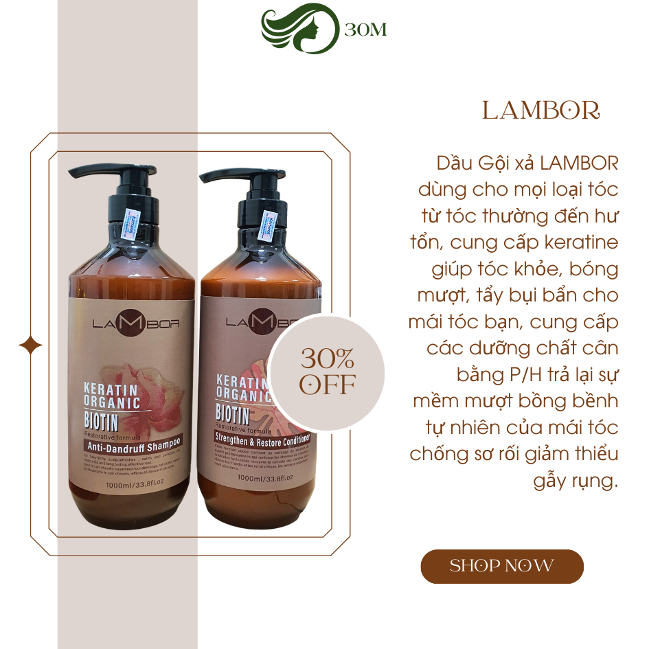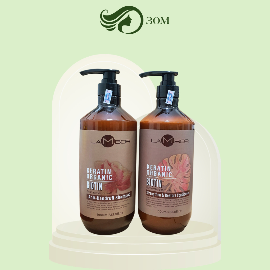 Dầu gội xả LAMBOR keratin organic hỗ trợ giảm gàu, giảm dầu, giảm rụng phục hồi tóc mềm mượt