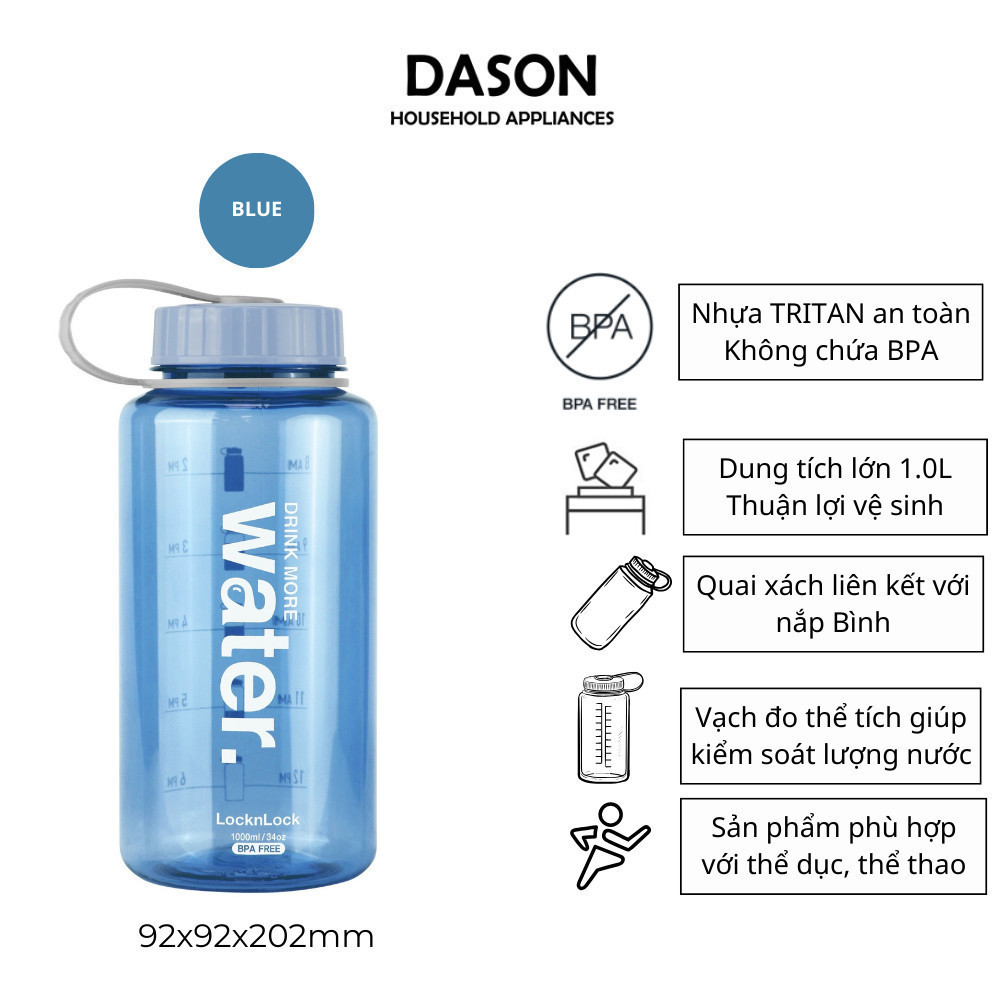Bình nước LocknLock Helper Bottle 1L - Màu xanh dương Chính hãng ABF610NBLU - HAPOS MOM & KIDS