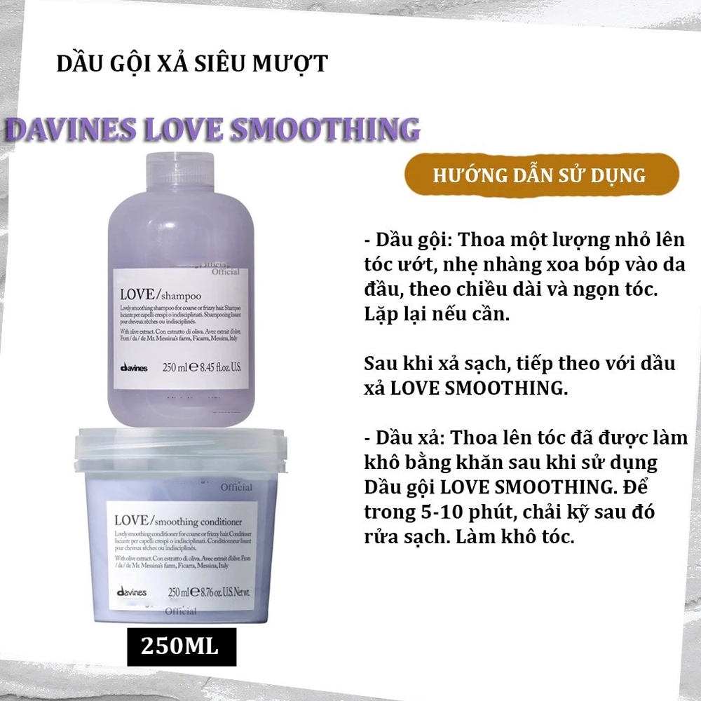 Cặp dầu gội xả Davines Nounou - Melu - Minu - Love Curl - Love Smoothing 250ML