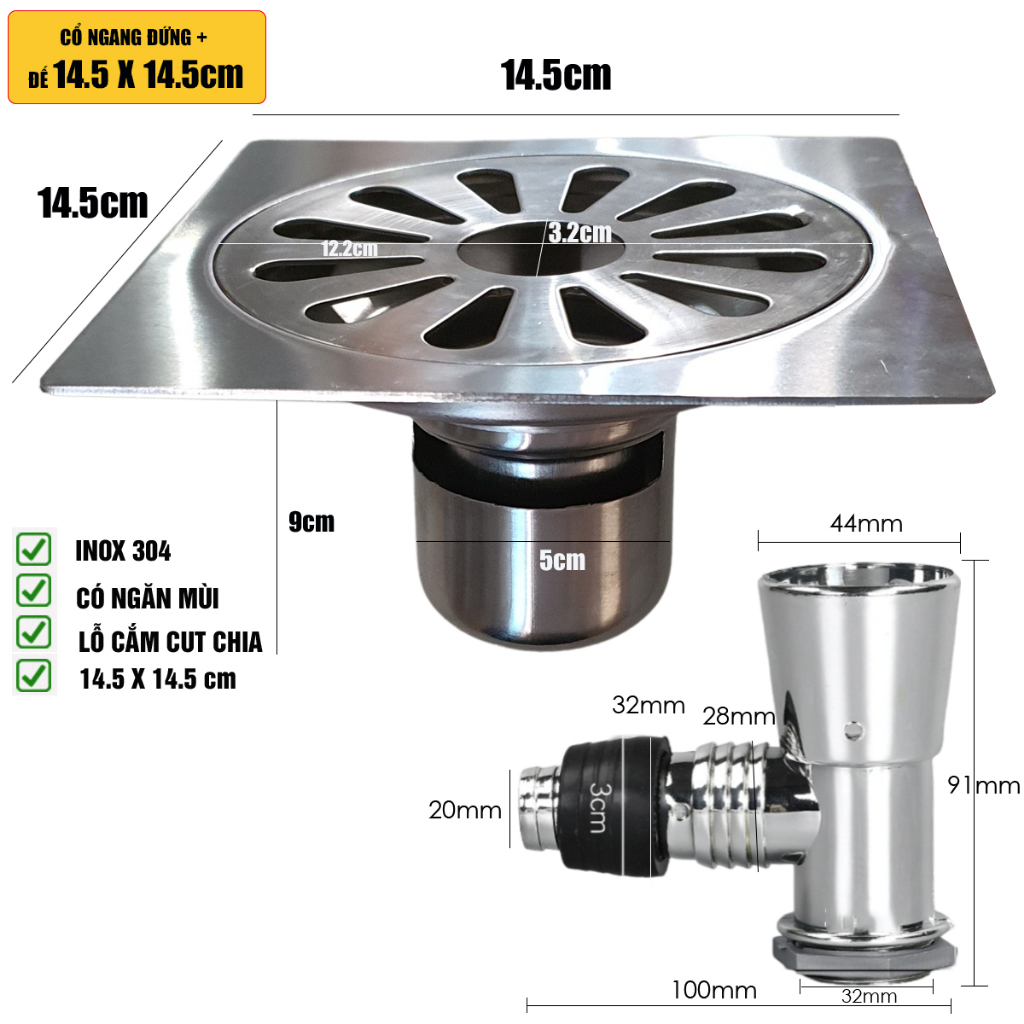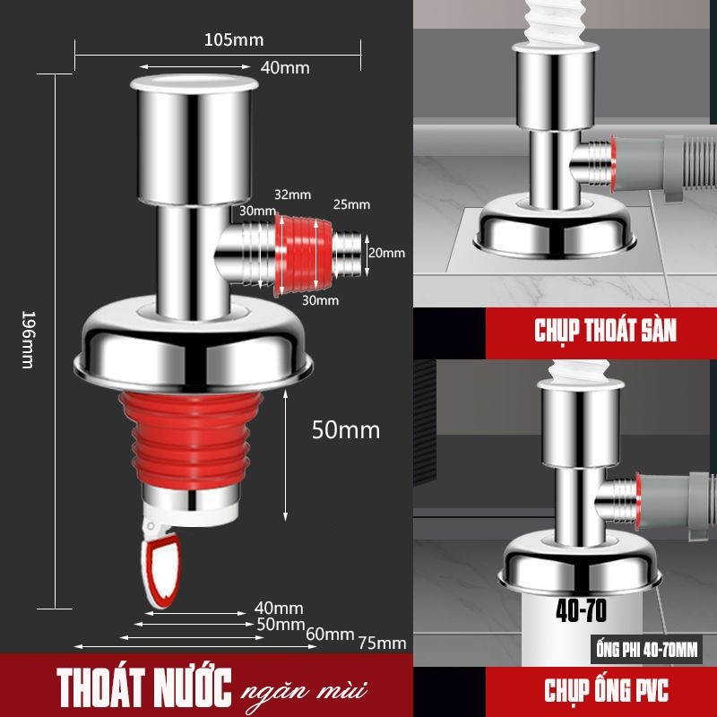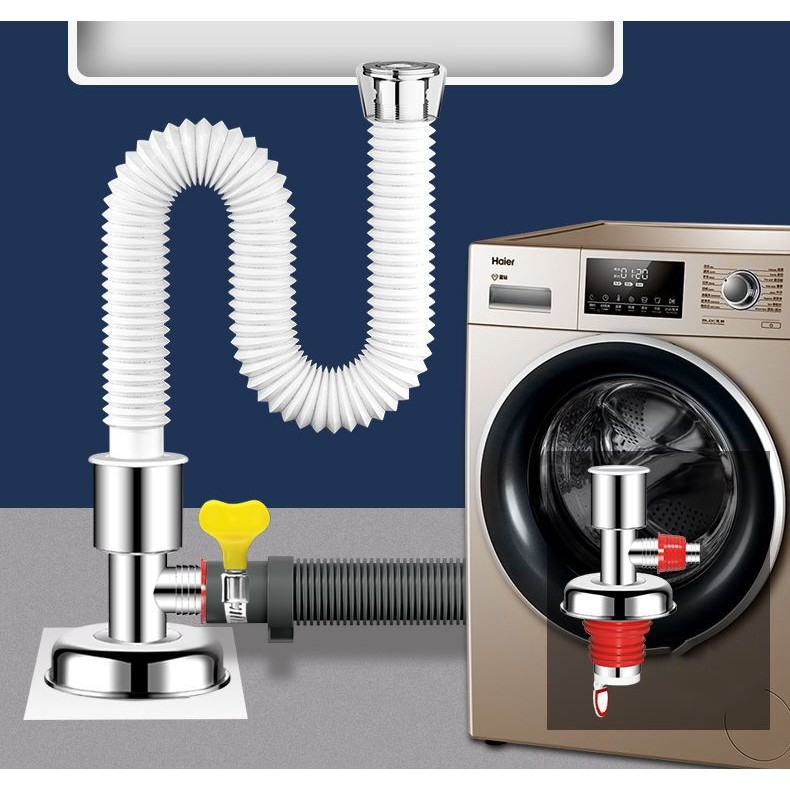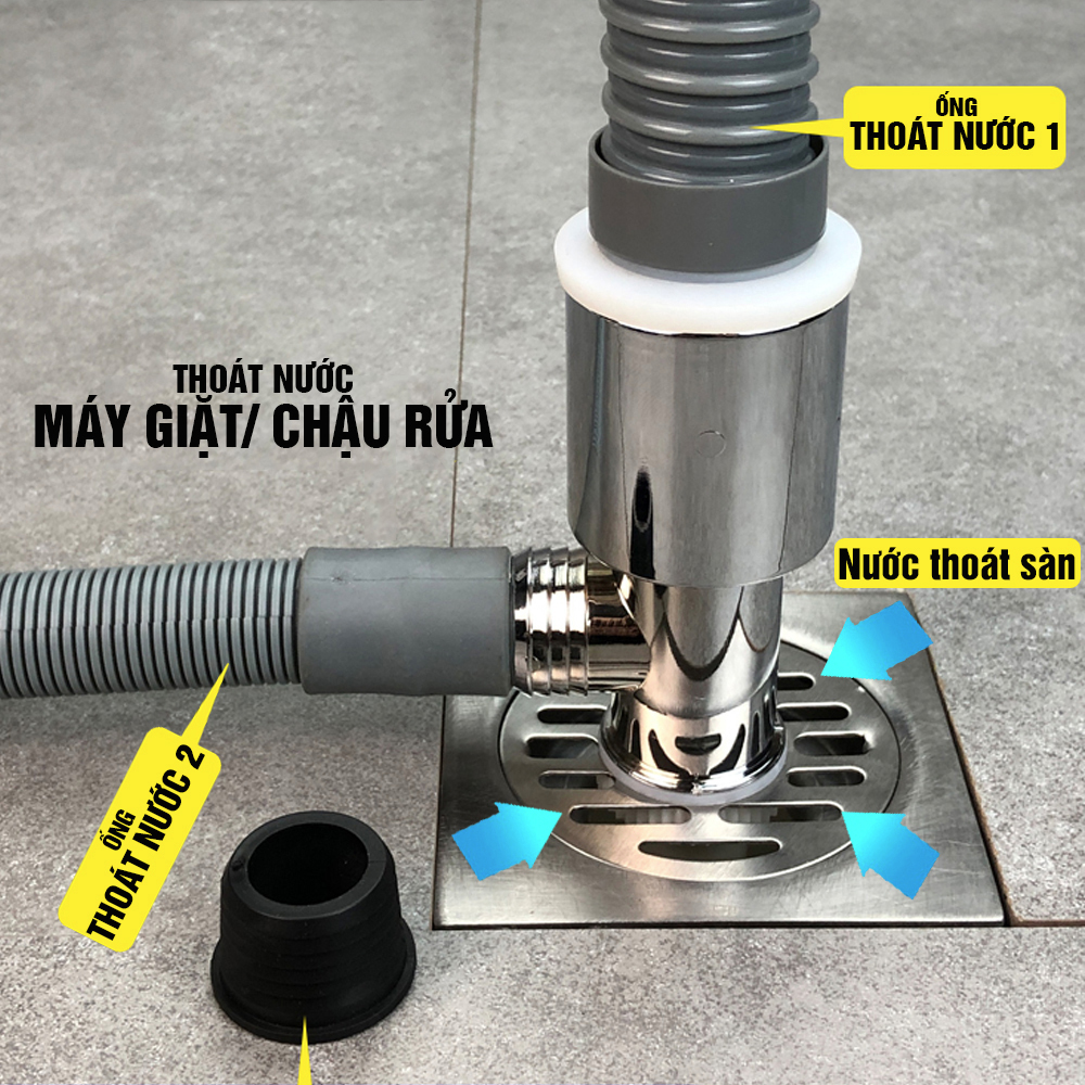 Bộ thoát nước máy giặt, nước thải, chống mùi hôi lắp thoát sàn, chia 2 ngang đứng kín, Minh House
