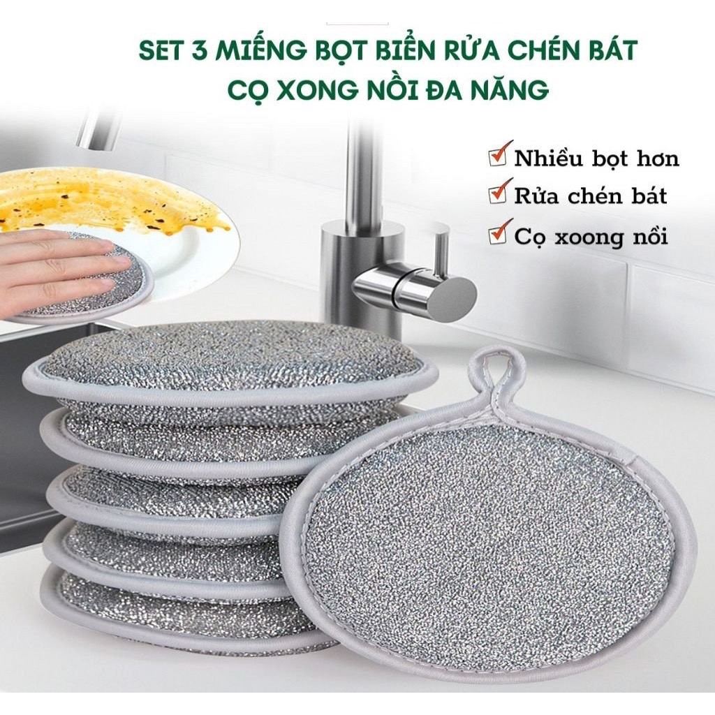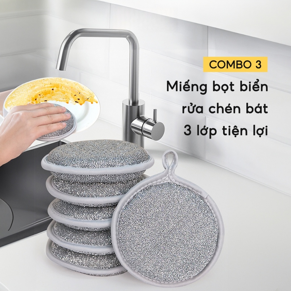 COMBO 3 Miếng Bọt Biển Rửa Chén Bát 3 Lớp JYoohome Giẻ Rửa Bát Đĩa Đũa Cọ Xoong Nồi Đa Năng Tạo Bọt