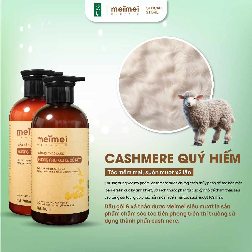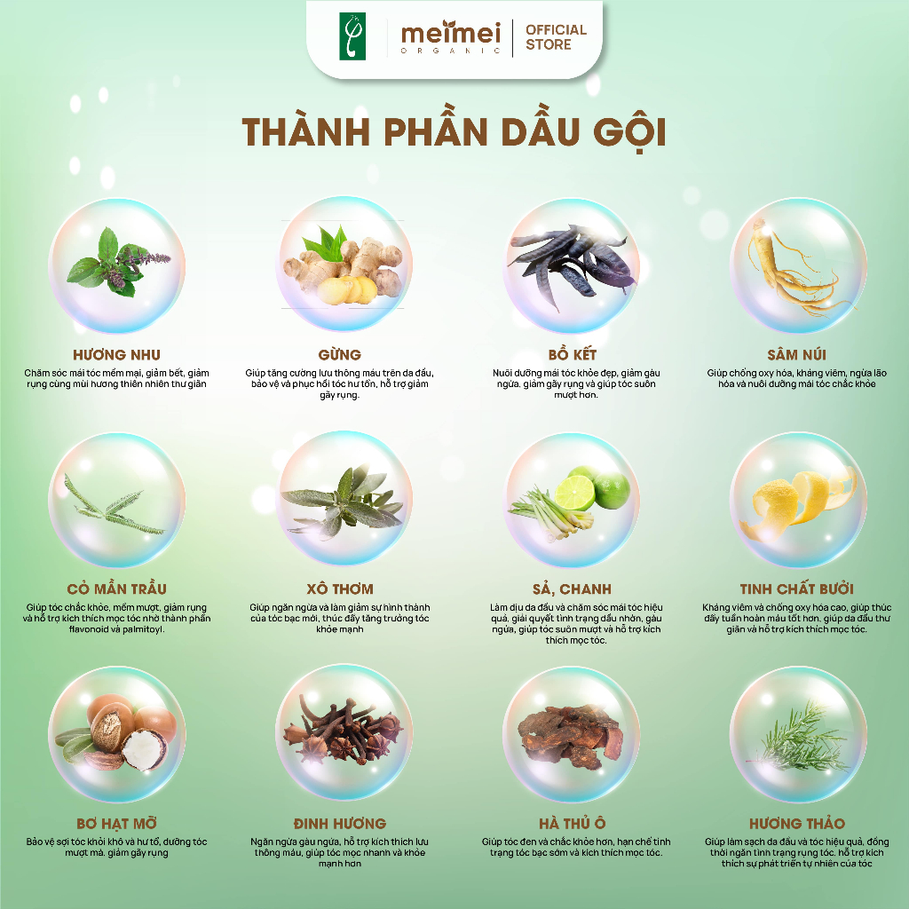 Dầu gội thảo dược Bồ kết Hương nhu Gừng Meimei Organic giúp mượt tóc ngừa gãy rụng 500ml
