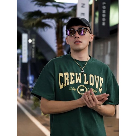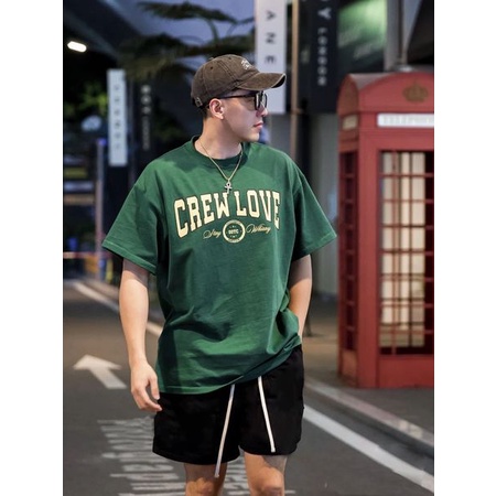 Đồ bộ áo thun cotton quẩn short nỉ in chữ CREW LOVE Màu XANH LÁ vải 230gsm