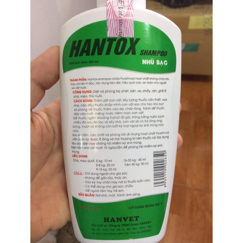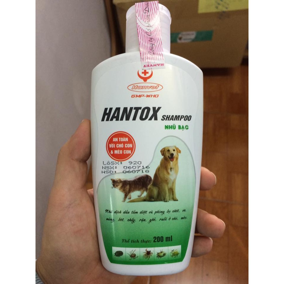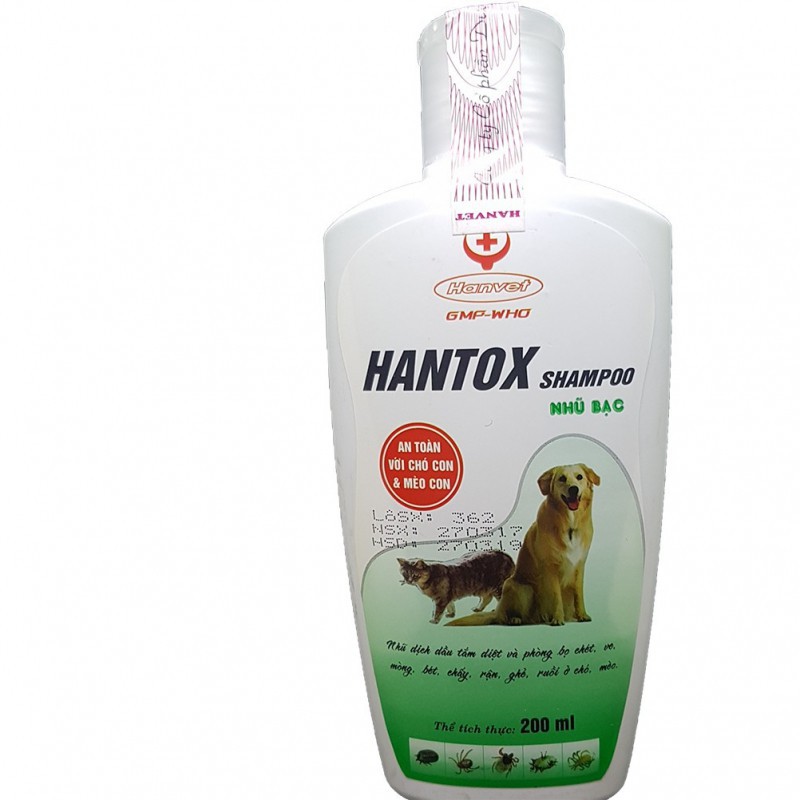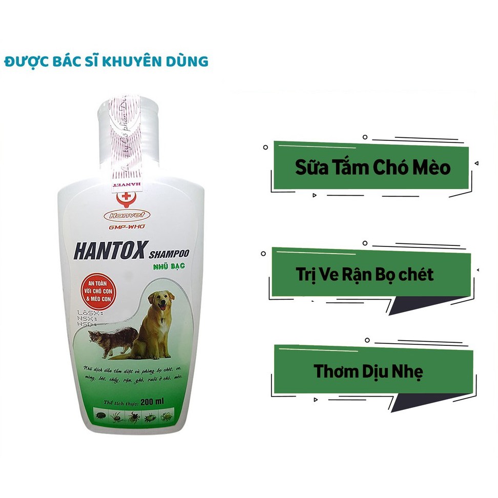 Sữa Tắm Trị Ve Rận Bọ Chét Chó Mèo Hantox Shampoo Xanh Nhũ Bạc dưỡng lông 200ml - ShopPetAz