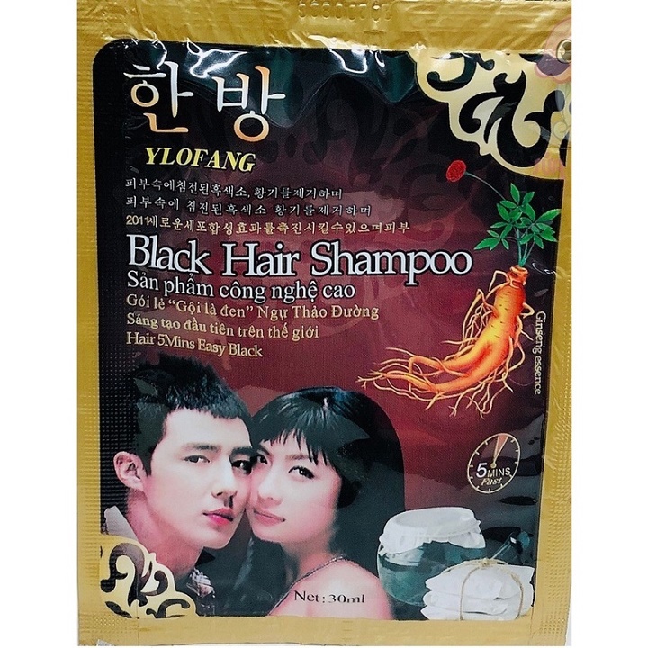 (Dây 10 gói) Dầu gội đen tóc Hàn Quốc Ylofang (30ml) - Đen sau một lần gội