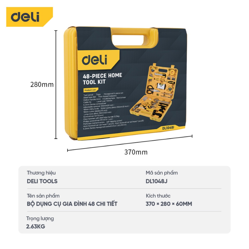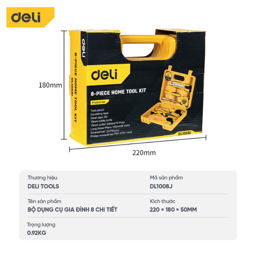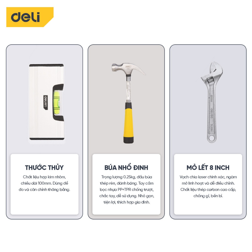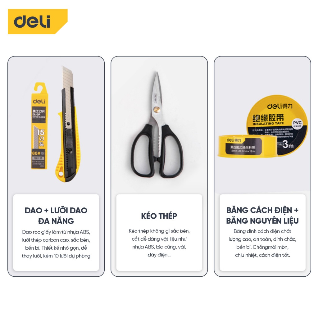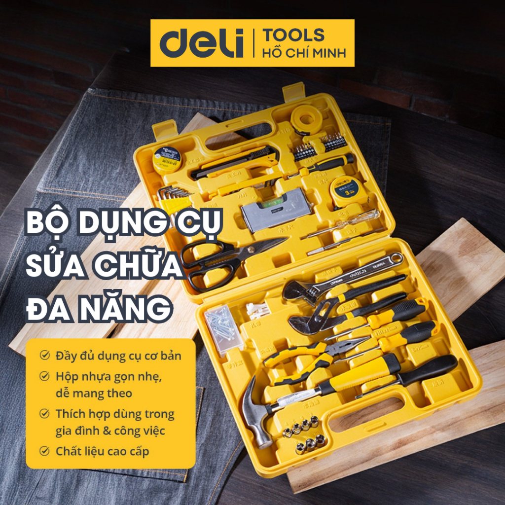 Bộ dụng cụ sửa chữa đa năng Deli chất liệu cao cấp, sử dụng nhiều mục đích, hộp gọn nhẹ tiện lợi