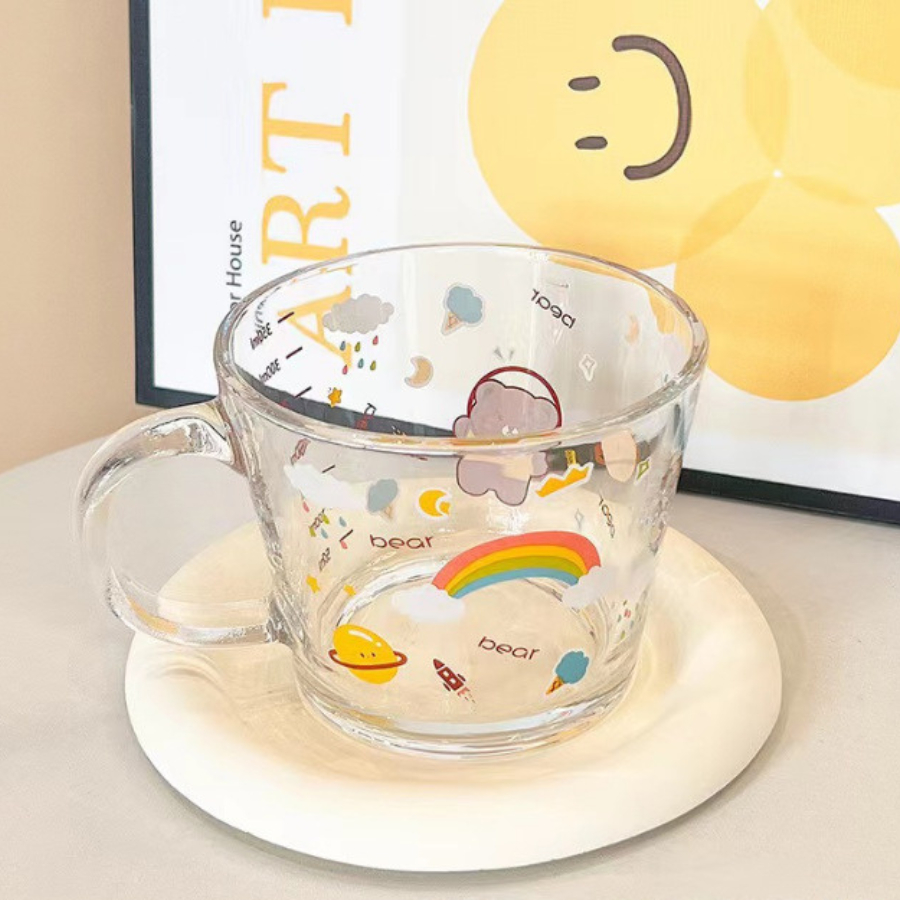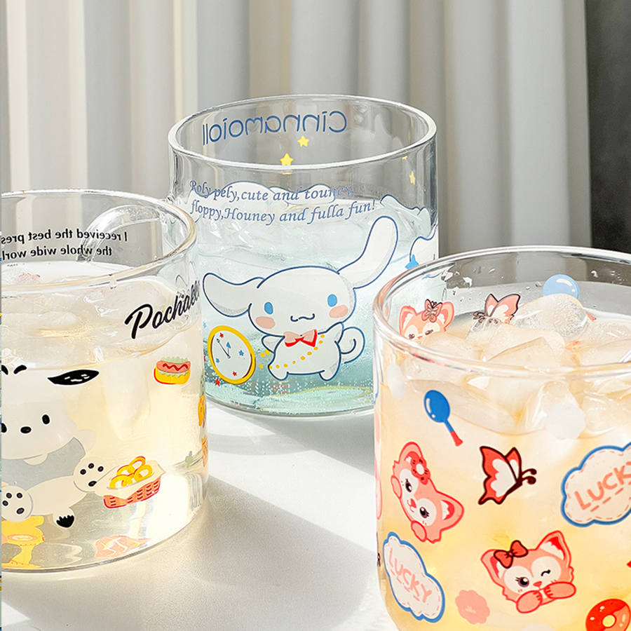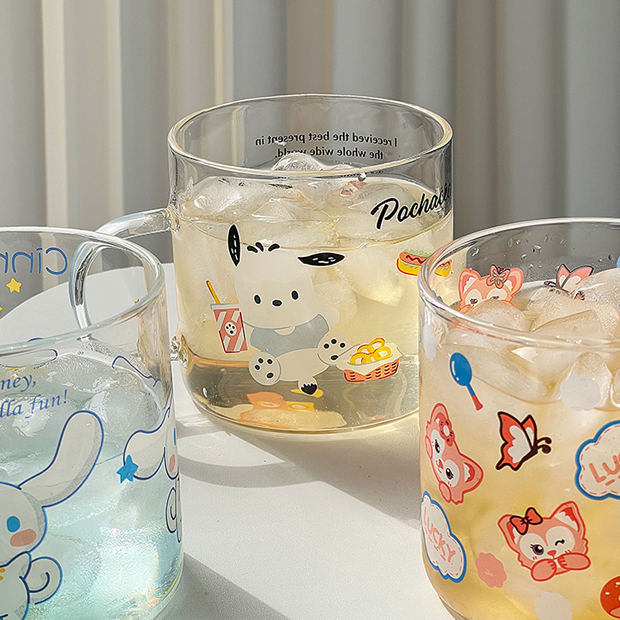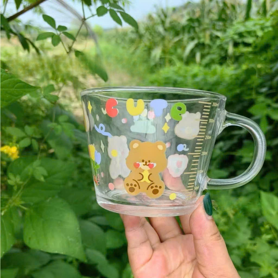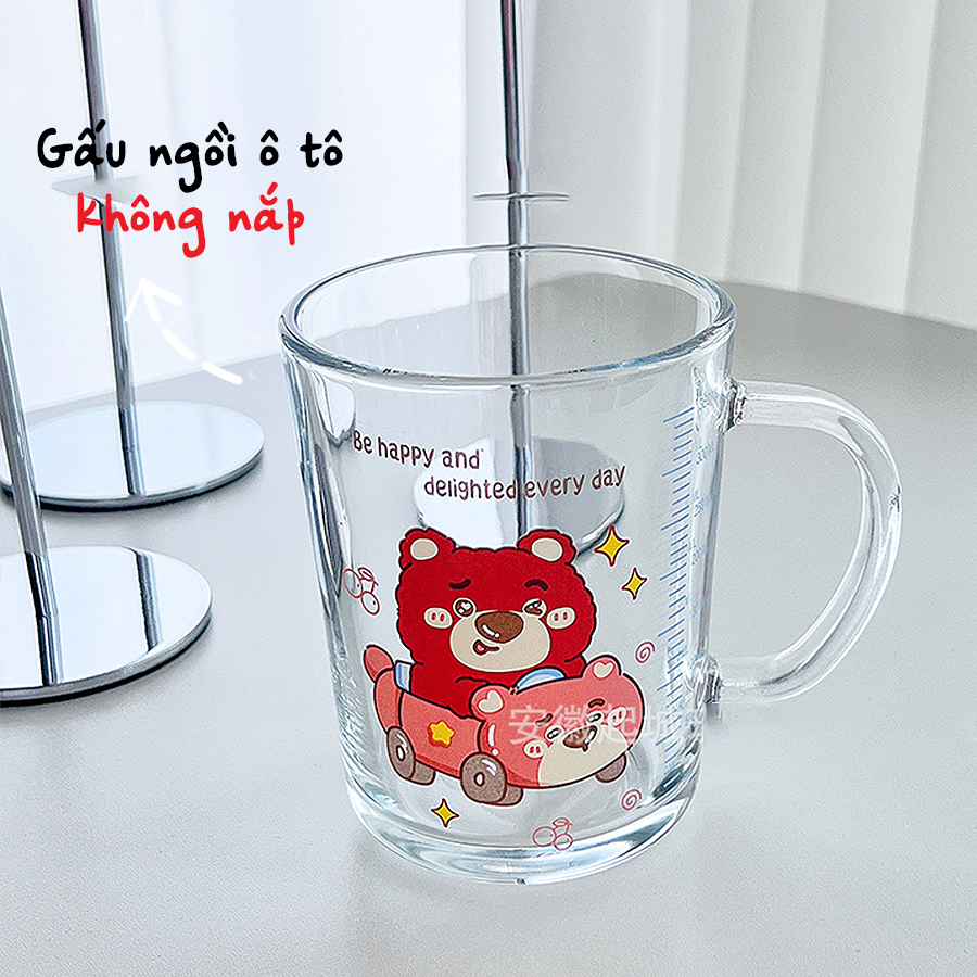 Cốc Thủy Tinh Dễ Thương, Ly Thủy Tinh Có Quai Cầm In Hình Cún Nhỏ Cute CTT023